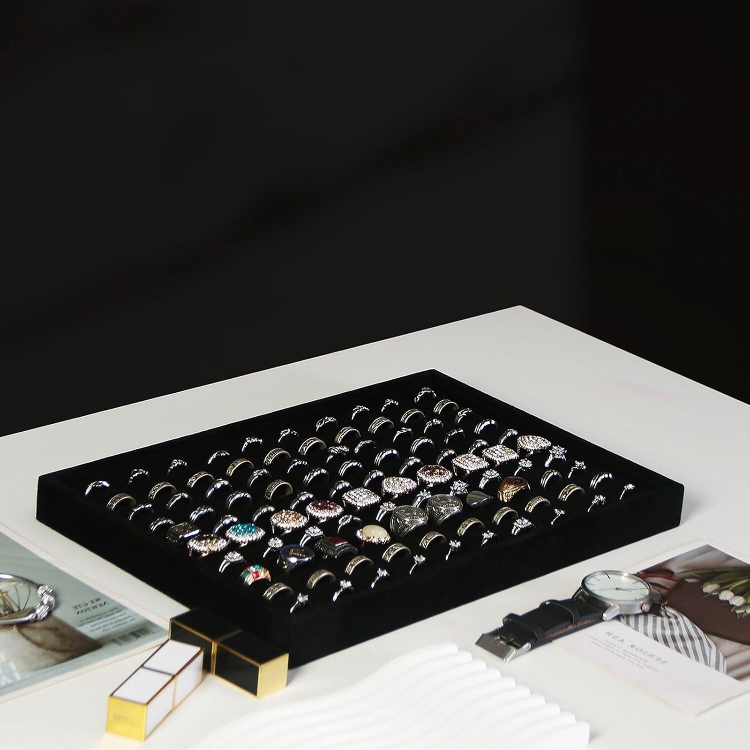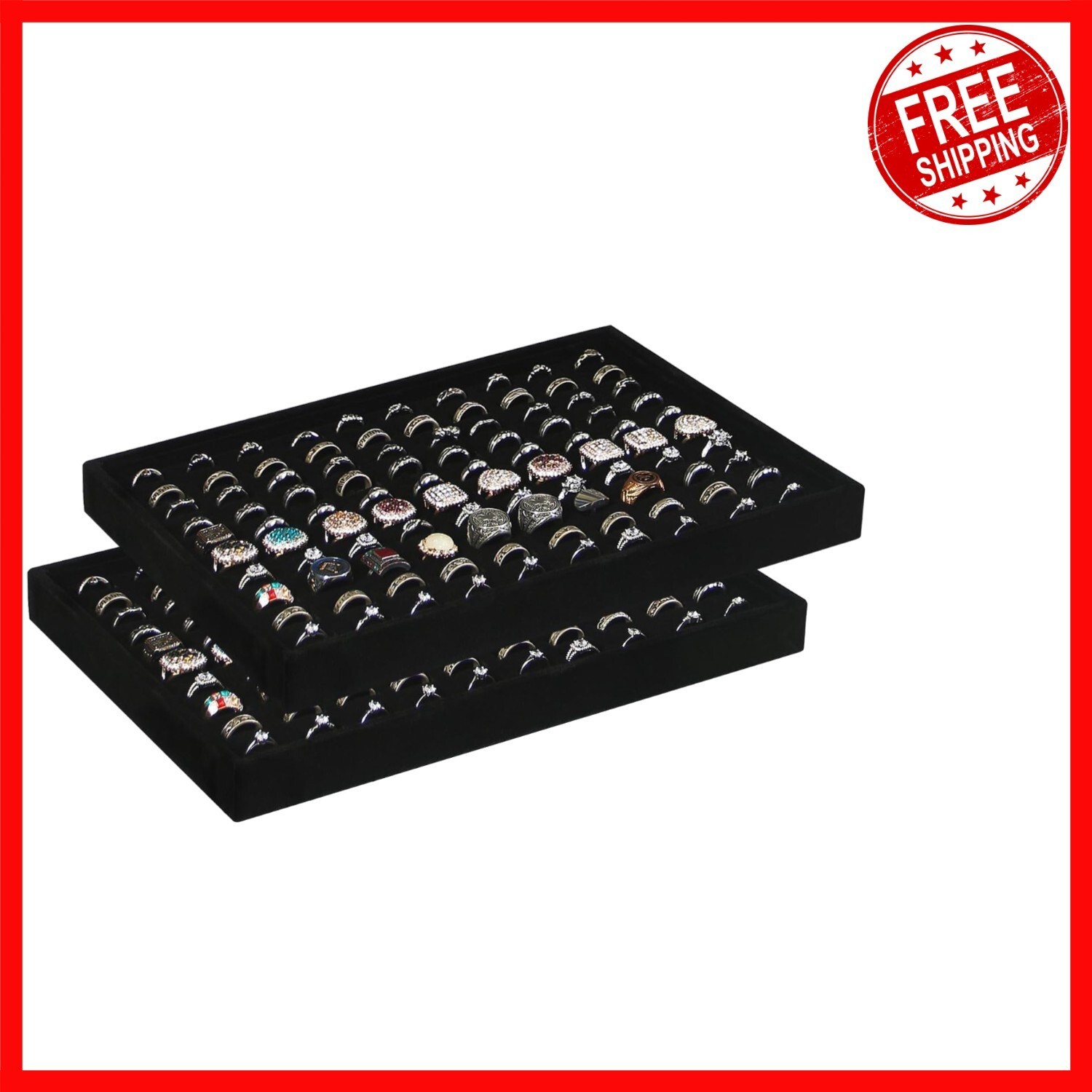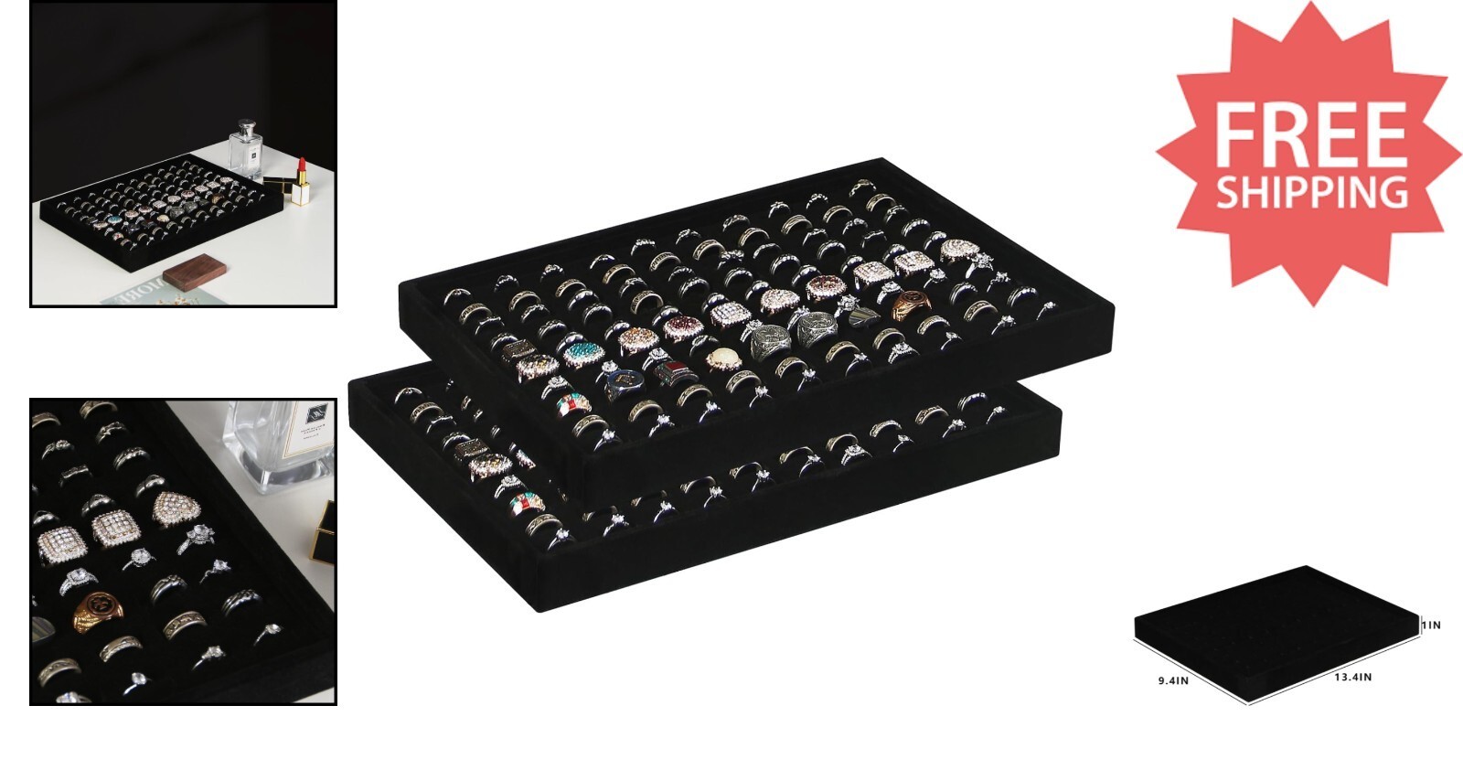Elegant Black Velvet Ring Display Tray Set - and 50 similar items