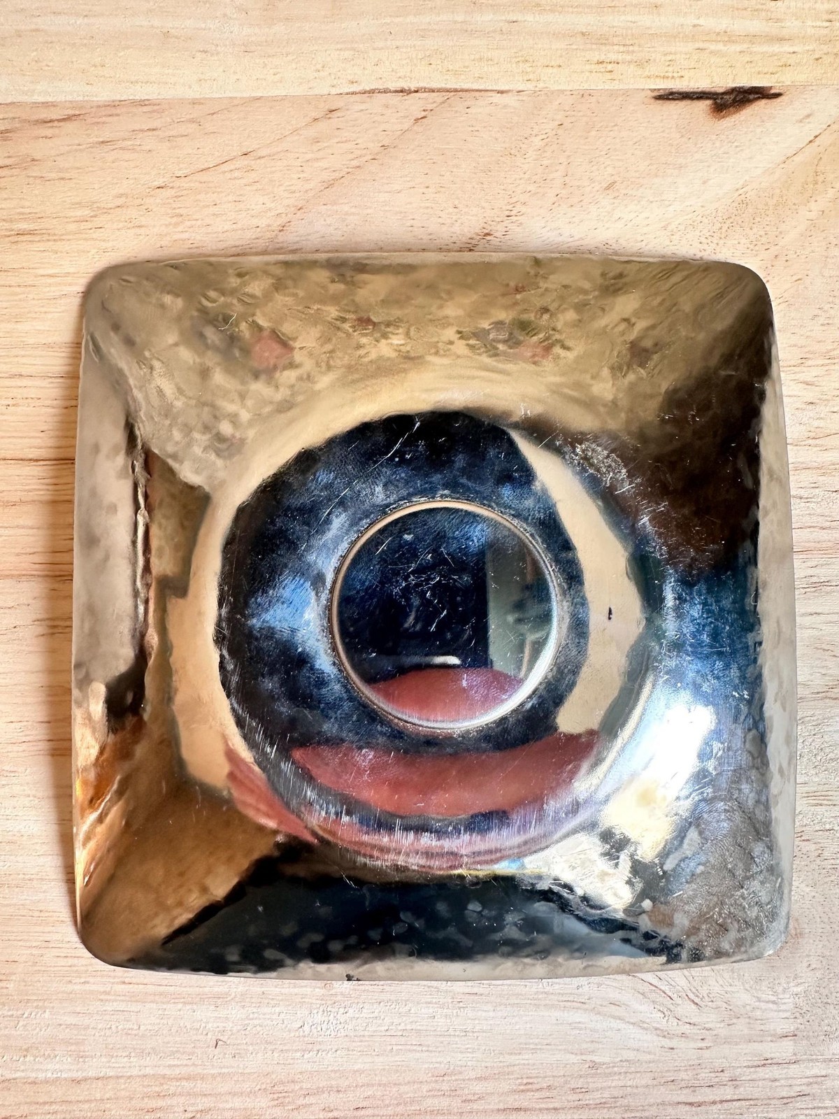 Metal square trinket dish with center cat coin. Key tray, gift for cat lovers.