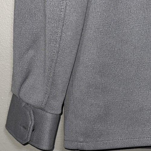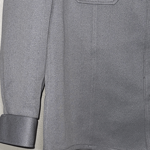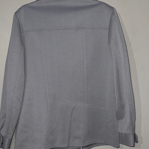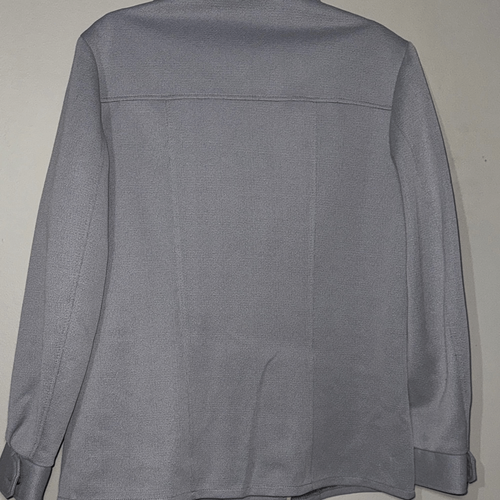 Elevate your style with this sleek gray button-up jacket. Perfect for any occasion, this jacket offers both comfort and sophistication.