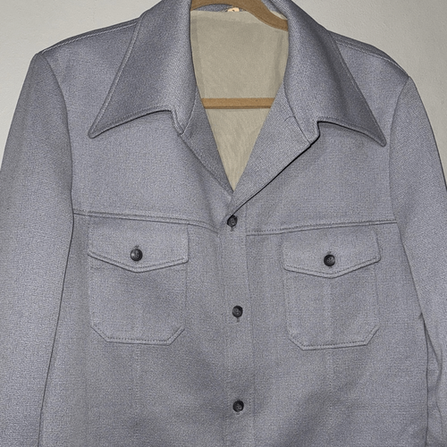 Vtg 70s Grey Leisure Polyester Disco Suit Jacket