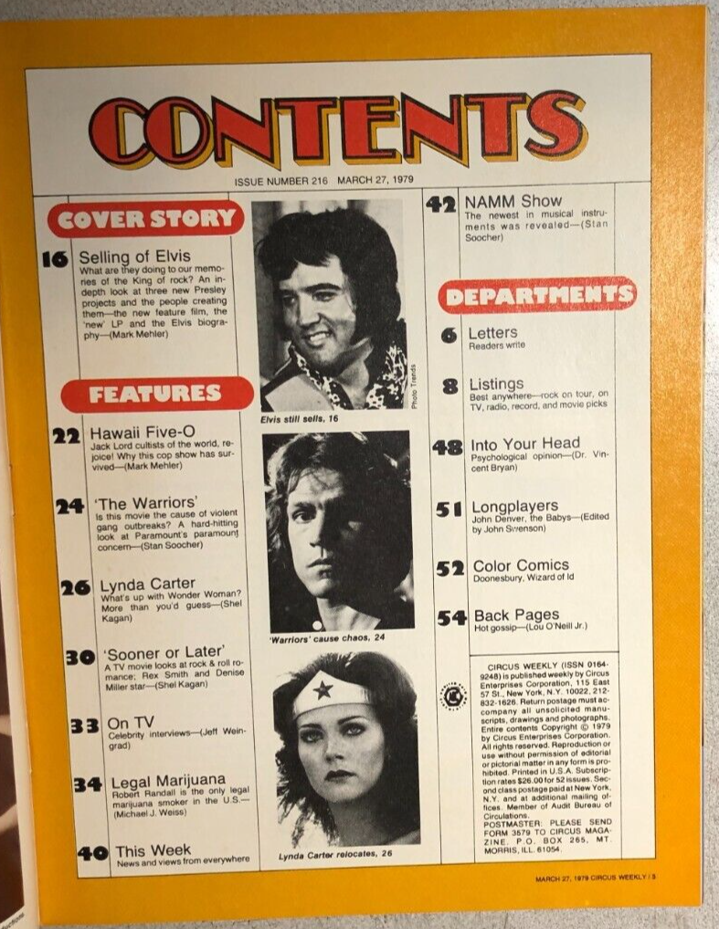 CIRCUS music magazine March 27, 1979 Elvis Lynda Carter The Warriors COMPLETE