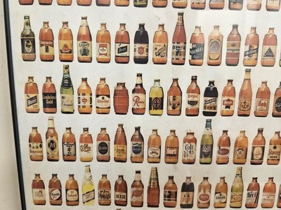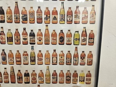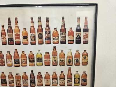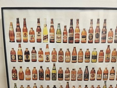 This is a wonderful 1976 Owens Illinois Ad Campaign--the maker of most beer bottles at the time! Pictured in the corner is Chris Schenkel, a dominant Broadcaster of the era. There are over 150 bottles pictured. This is a poster that has been framed by a previous owner. It measures approximately 17" tall x 11" wide. There are no rips or tears to the poster. Be sure to check out my pictures for complete description. Please contact me with questions, and be sure to check out my other items as I will combine shipments to save you money on shipping. Thank you for looking.
