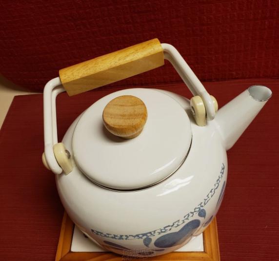 Jay White Enamel Tea Kettle Pot With Blue and similar items