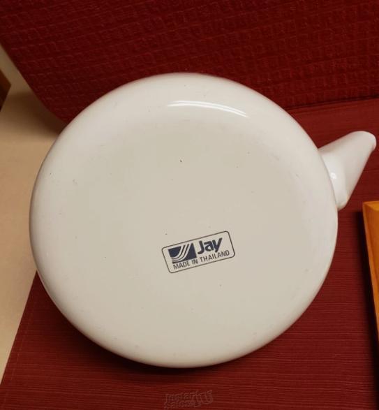 This vintage tea kettle from the 80s is a charming addition to any kitchen. Its heart-shaped design, adorned with blue hearts, makes it a unique piece that is sure to catch the eye. With a white enamel finish it is perfect for those who appreciate both form and function. The manual power source and 850W power make it efficient and easy to use. Made in Thailand with high-quality enamel material, this tea kettle is durable and built to last. Whether you're a collector or simply looking for a one-of-a-kind tea kettle, this vintage gem is sure to please. Like new condition.