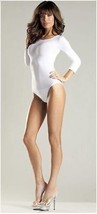 BW-634 Sexy White Opaque Long Sleeve Scoop Neck Bodysuit Teddy Leotard