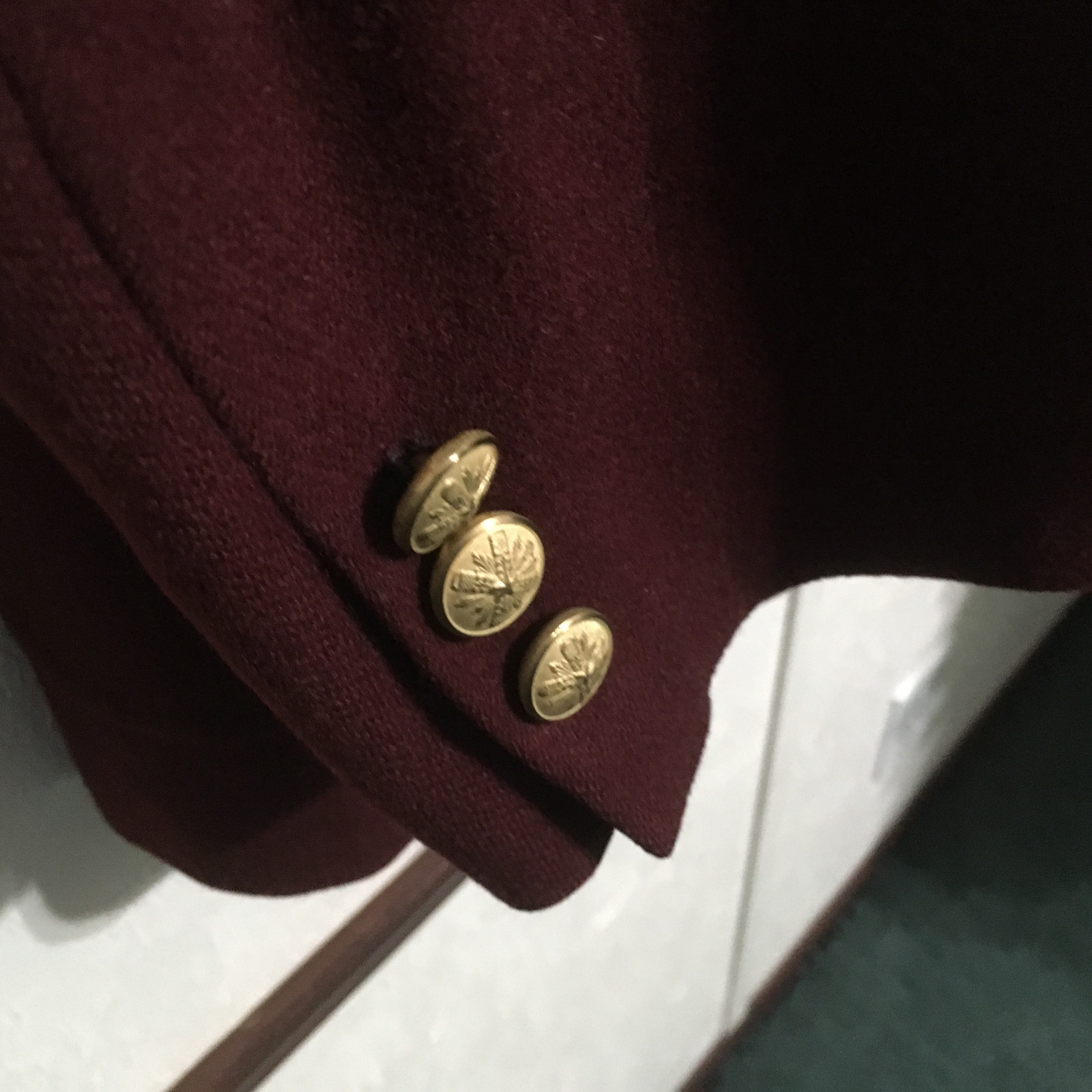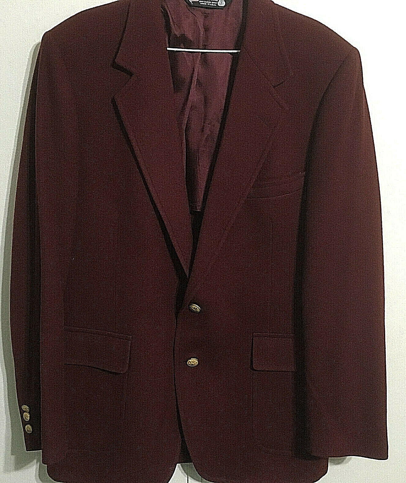 Vintage mens wool blazer suit jacket large pockets gold color buttons USA made