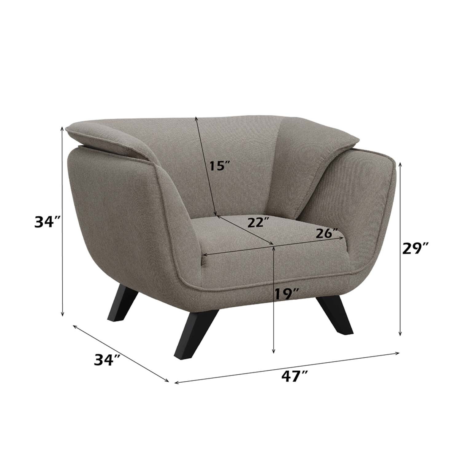 Fit lots of style into a small space. This compact Nayeli chair features a clean, boxy profile and a firm yet plush seat. Thanks to the pocket coils and high-density foam, this will become your favorite piece in your home. The subtly tapered legs are crafted from wood in a black finish, adding to the midcentury-inspired design. The gray linen is trendy and neutral and allows for the pieces to be styled in various ways.