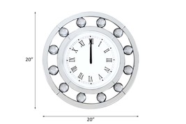 Time to shine with the Boffa mirrored wall clock. This clock features a circular floating crystal balls and beveled mirror frame. The clock face has a clean, modern look featuring roman numerals. Its casual yet elegant look will become the most stunning decoration of any place.