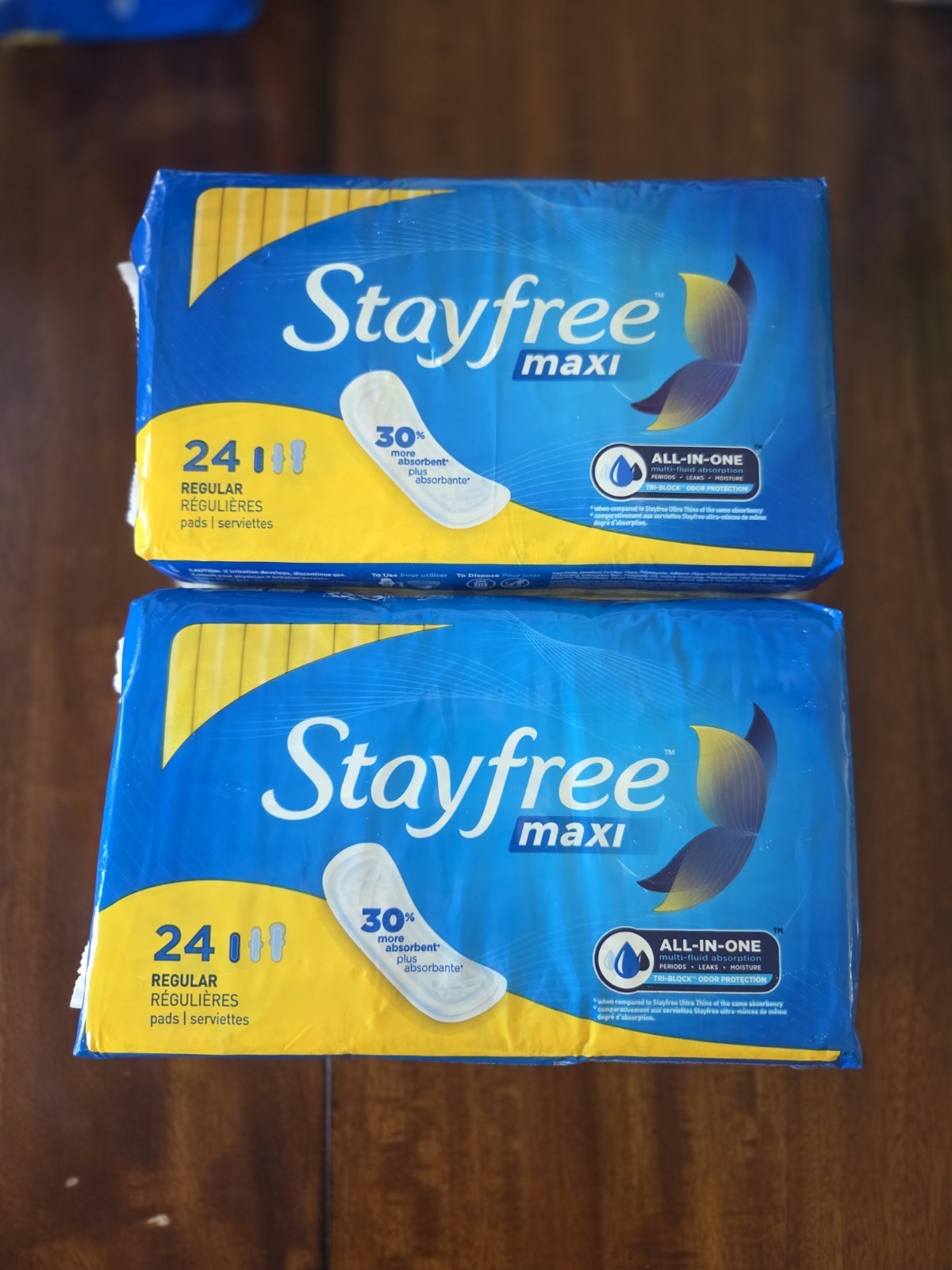 Stayfree Maxi Regular Wingless Pads 24 Pads Lot Of 2.