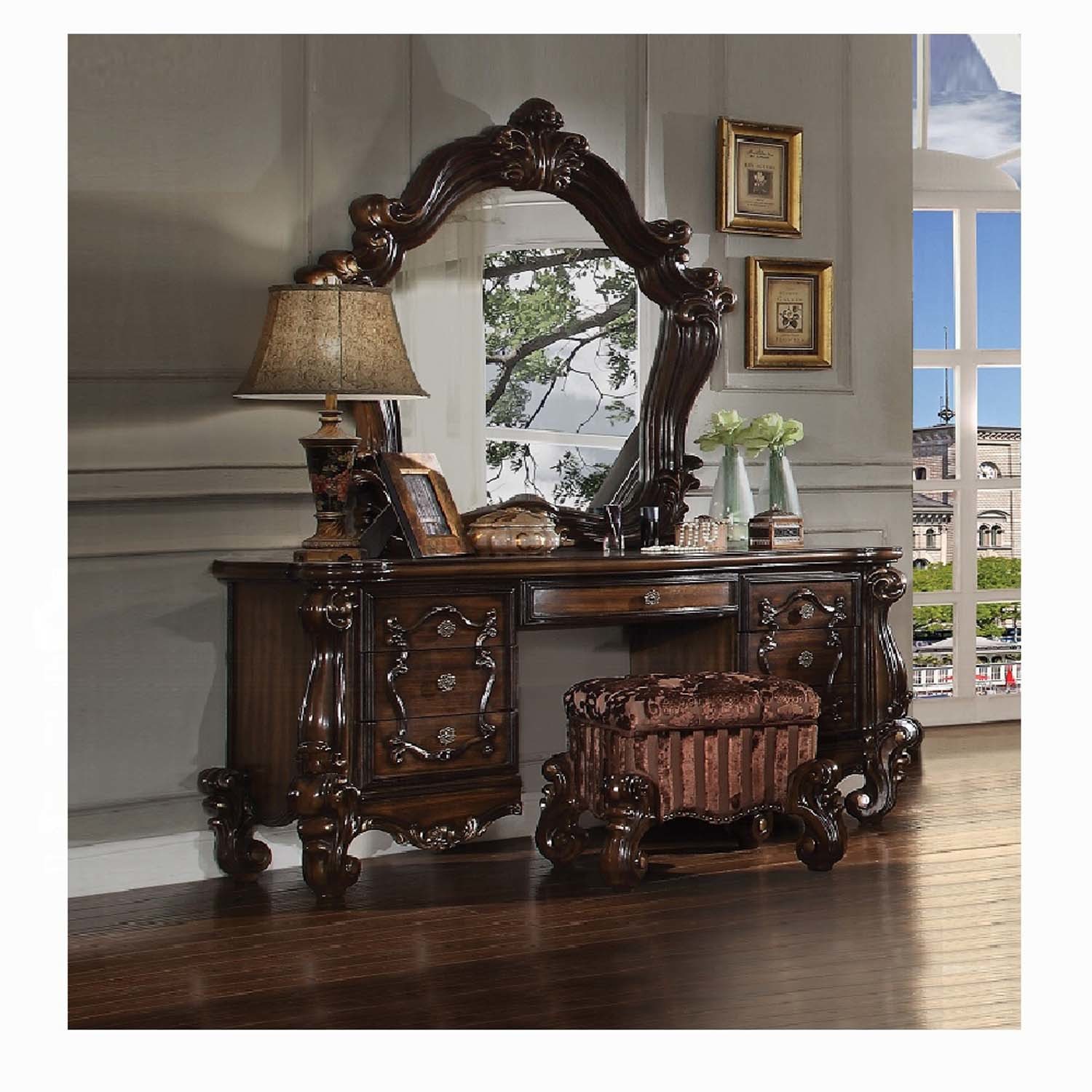 The Versailles mirror gives your bedroom all the grandeur of royal style. Presented in a stately cherry oak finish this mirror has a substantial silhouette and is adorned with such old-world details, carved medallions, and shaped moldings. This mirror is the perfect addition to any bedroom.