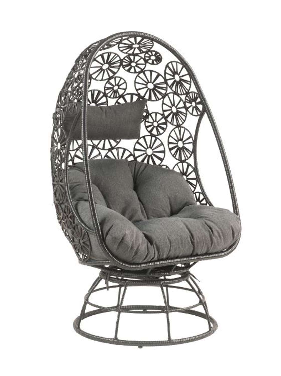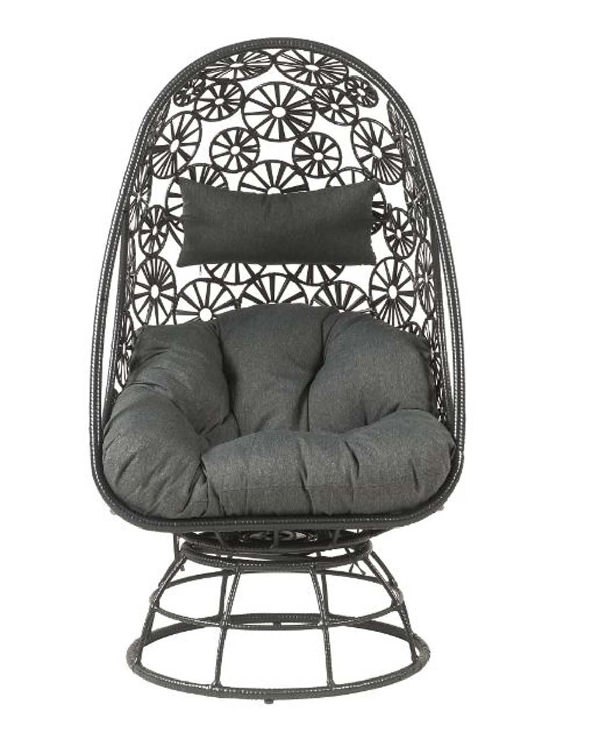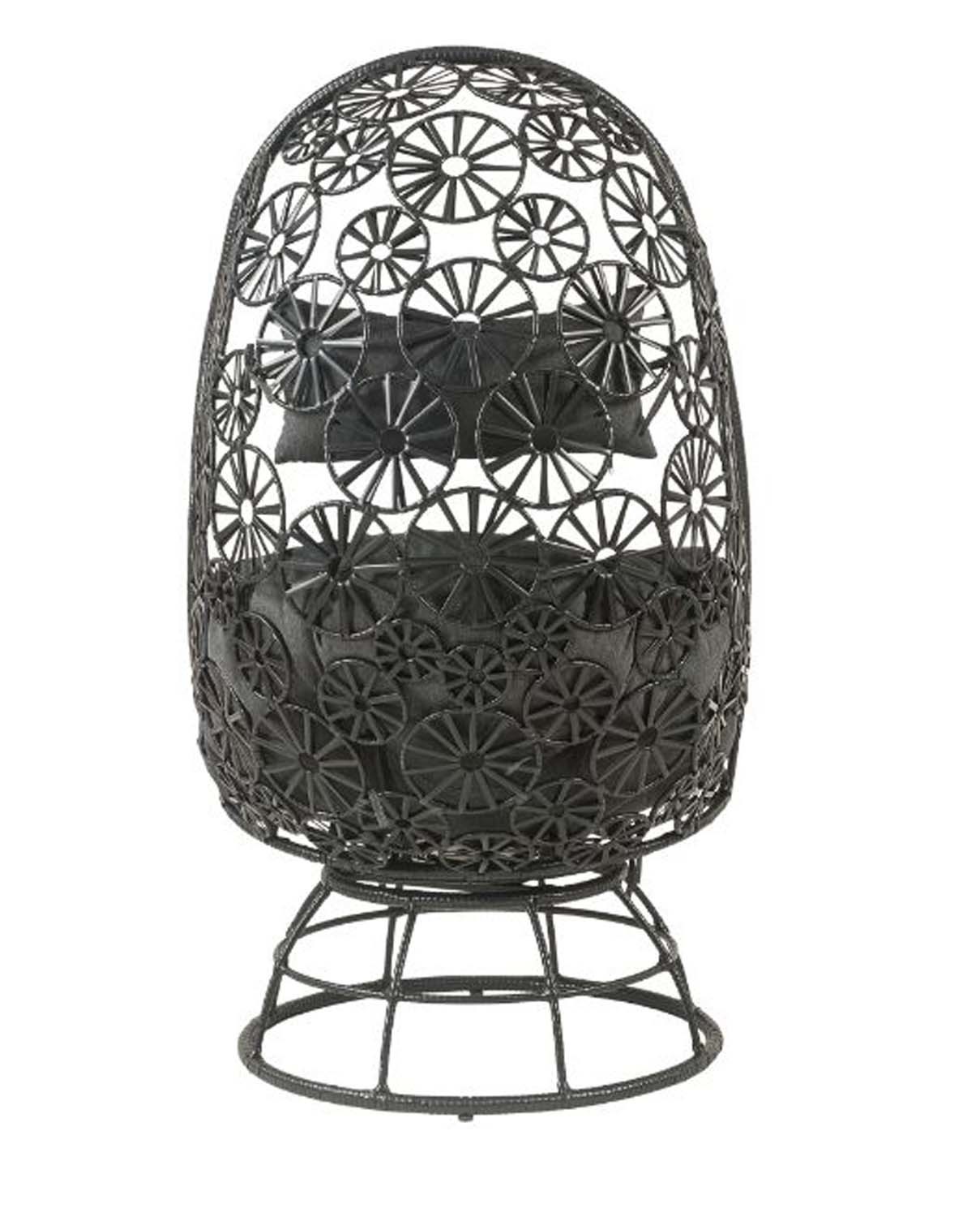 Elegant, airy wicker-weaving work offers a lovely retreat to relax your body and soothe your mind. Black wicker frame with metal base highlights the fabulously airy and sturdy construction. Teardrop-shaped design combines beautiful floral accents to create a sophisticated look. The additional seat cushion will make you feel so comfortable and relaxed lounging in this chair. Complementing side table makes a great place to rest your drink or book with its glass tabletop and stable drum base. Discover a dreamy oasis to stay with Hikre Patio Lounge Chair Side Table.