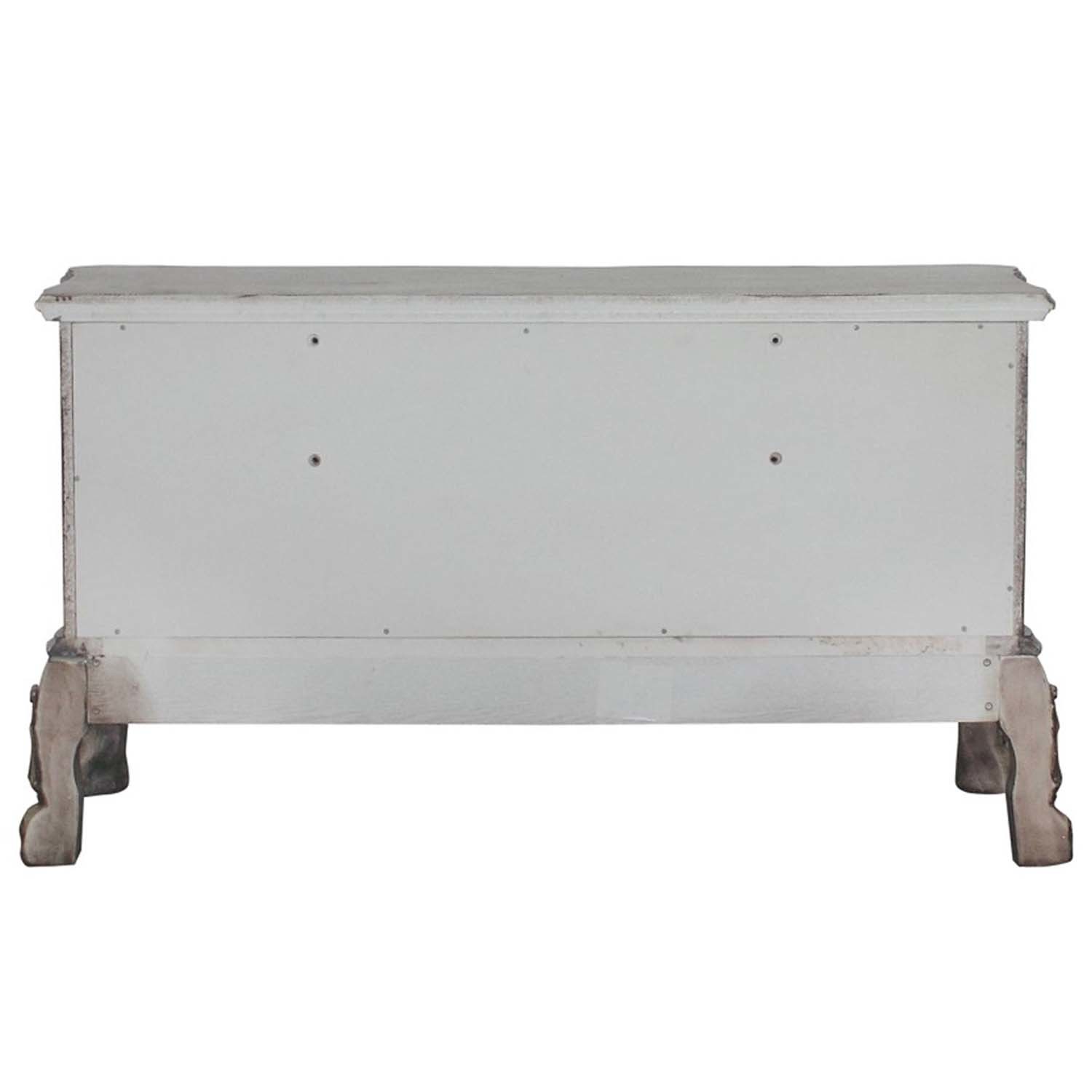 Features: Oversized Vanity Table 5 Drawer Storage Wooden Case-Leg: Wood, Raised Poly Resin Moldings with contrast brushed finish Wood Claw Leg (Unassembled) Designed for comfort and everyday functionality. Set Includes: One (1) Vanity Table
