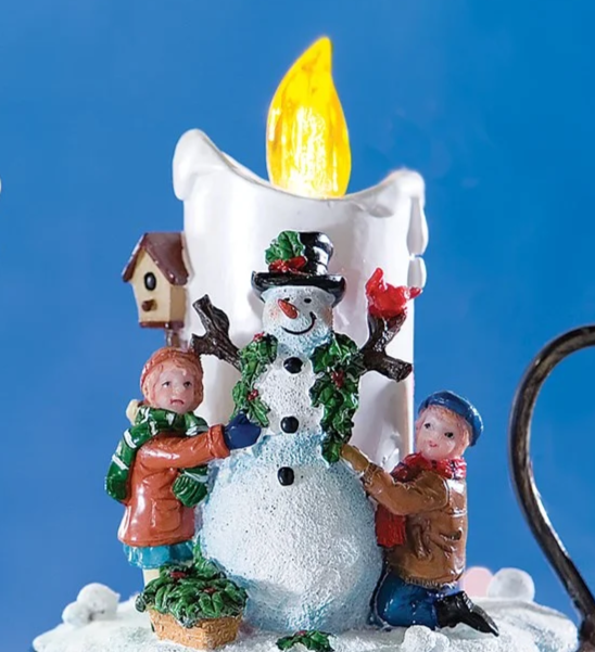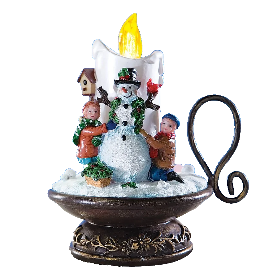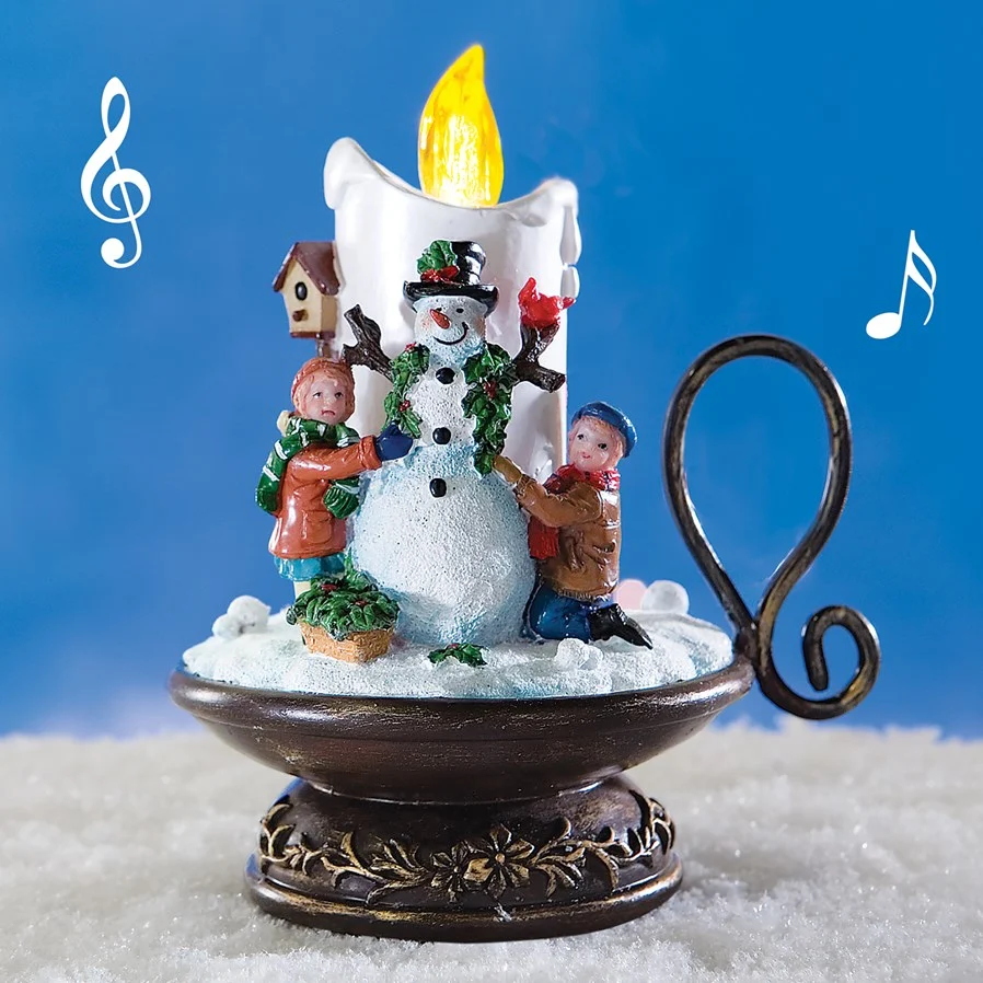 This charming holiday candlestick holds a flickering LED - tipped "candle," surrounded by a snowman and children in a winter setting. Enjoy the sounds of 8 Christmas carols alone, or with the flickering light on. Sure to be a favorite for years to come. Req. 3 "AAA" batteries (not included).
