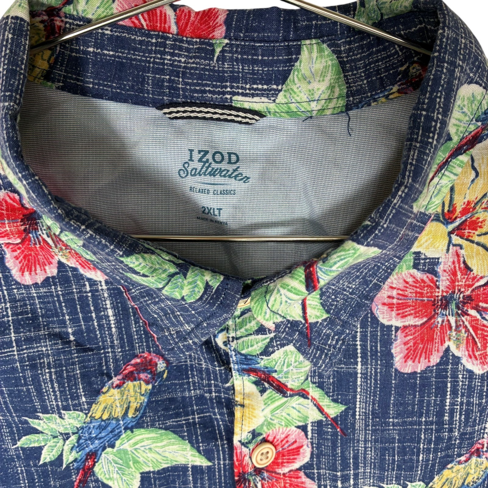 IZOD Big and Tall Mens Short Sleeve Moisture Wicking Button-Down Shirt 2XLT Blue