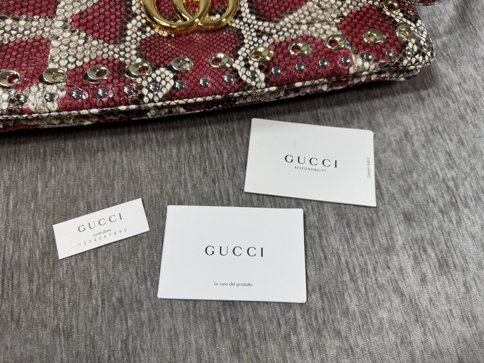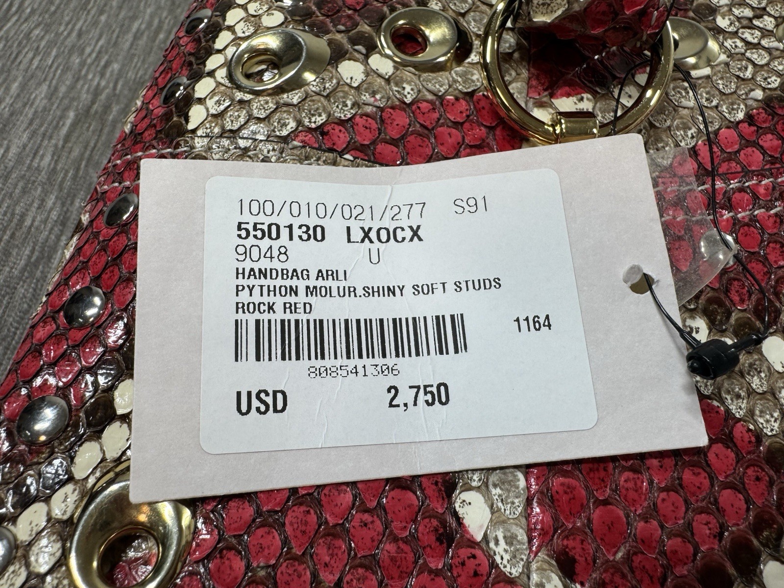 Gucci Python Arli Bag Purse Handbag Rock Red Snakeskin Exotic Studs w Tags