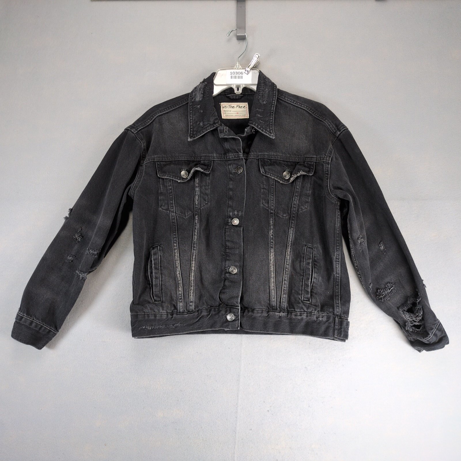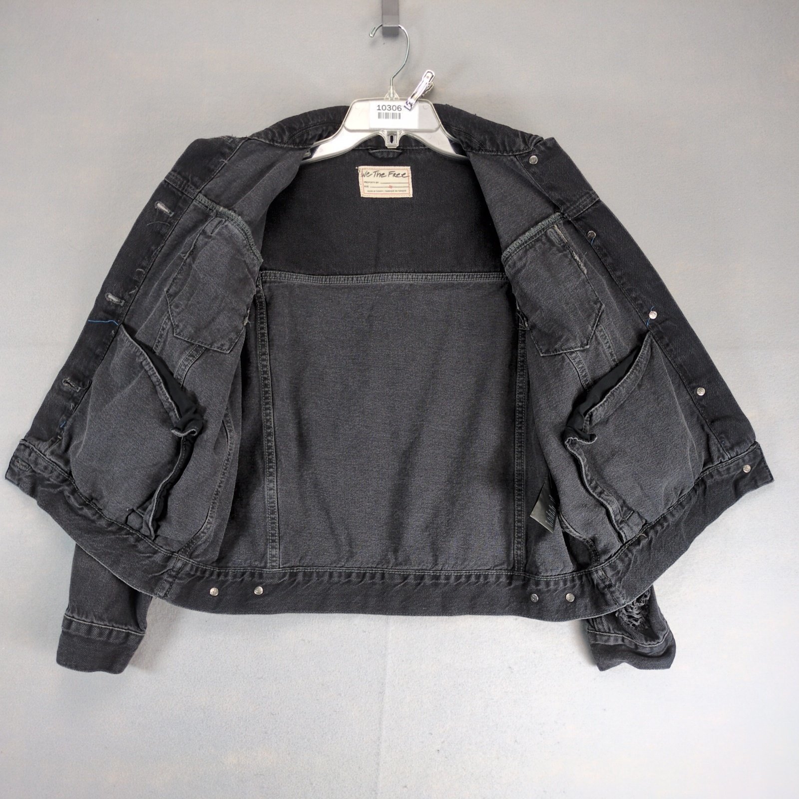 We the Free People Jolene Trucker Black Denim Jean Jacket Women's XS Distressed