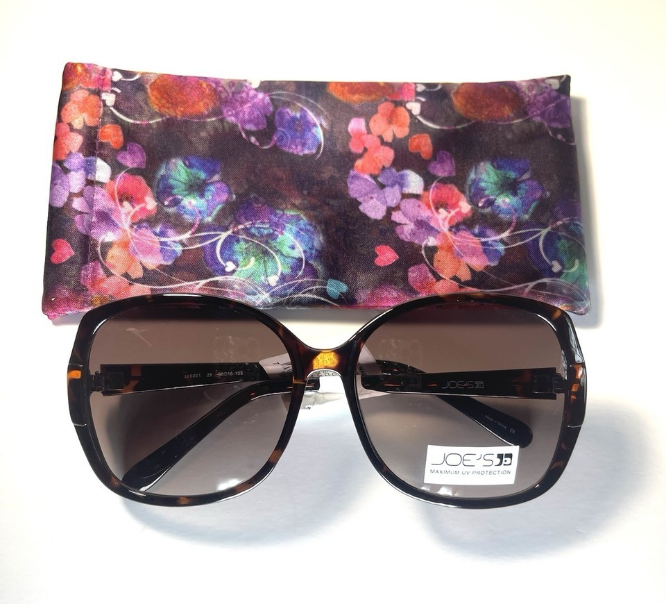 NEW $98 JOE?S JOES Brown Rose Tortoise Rectangle Sunglasses JJ 6001 29 + Case