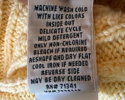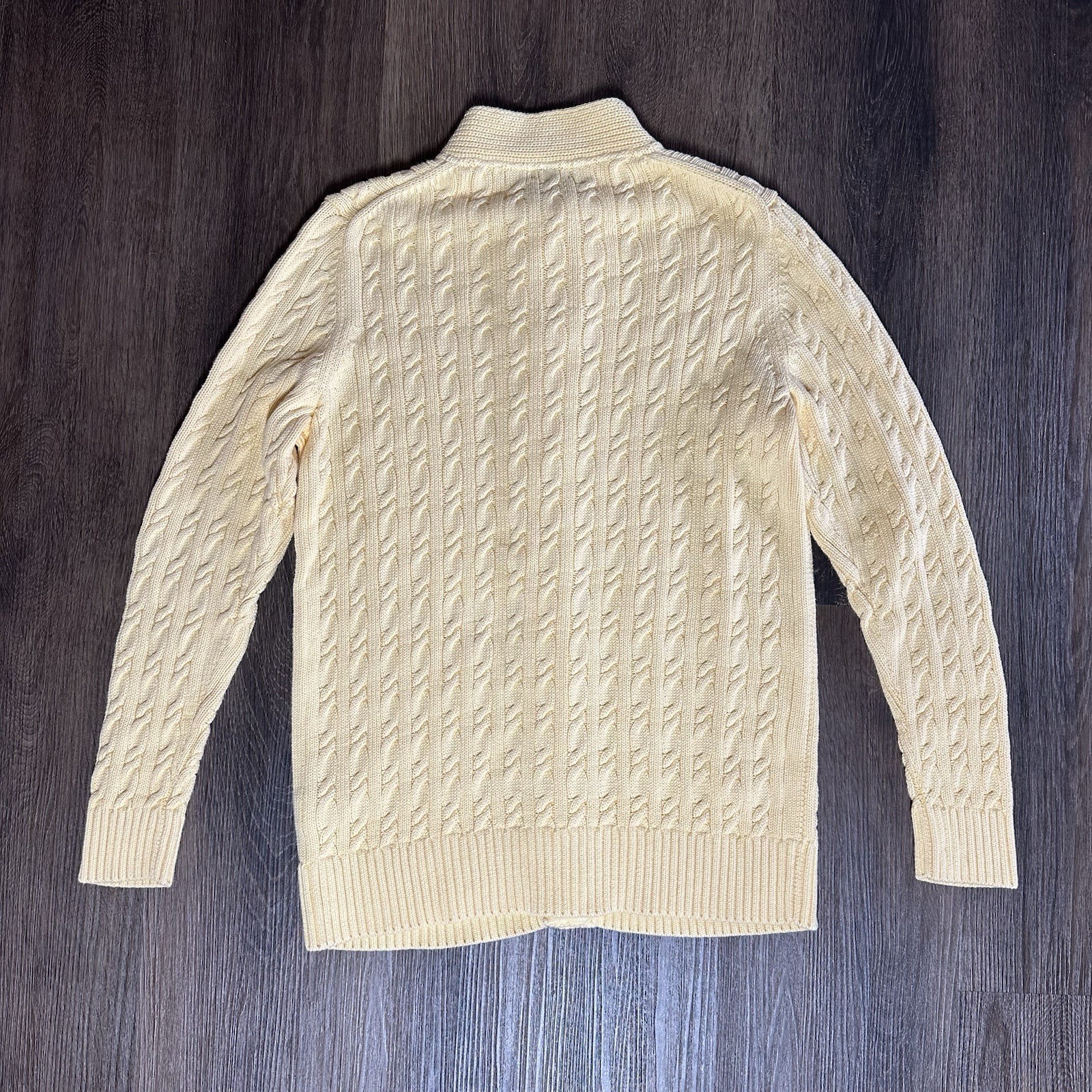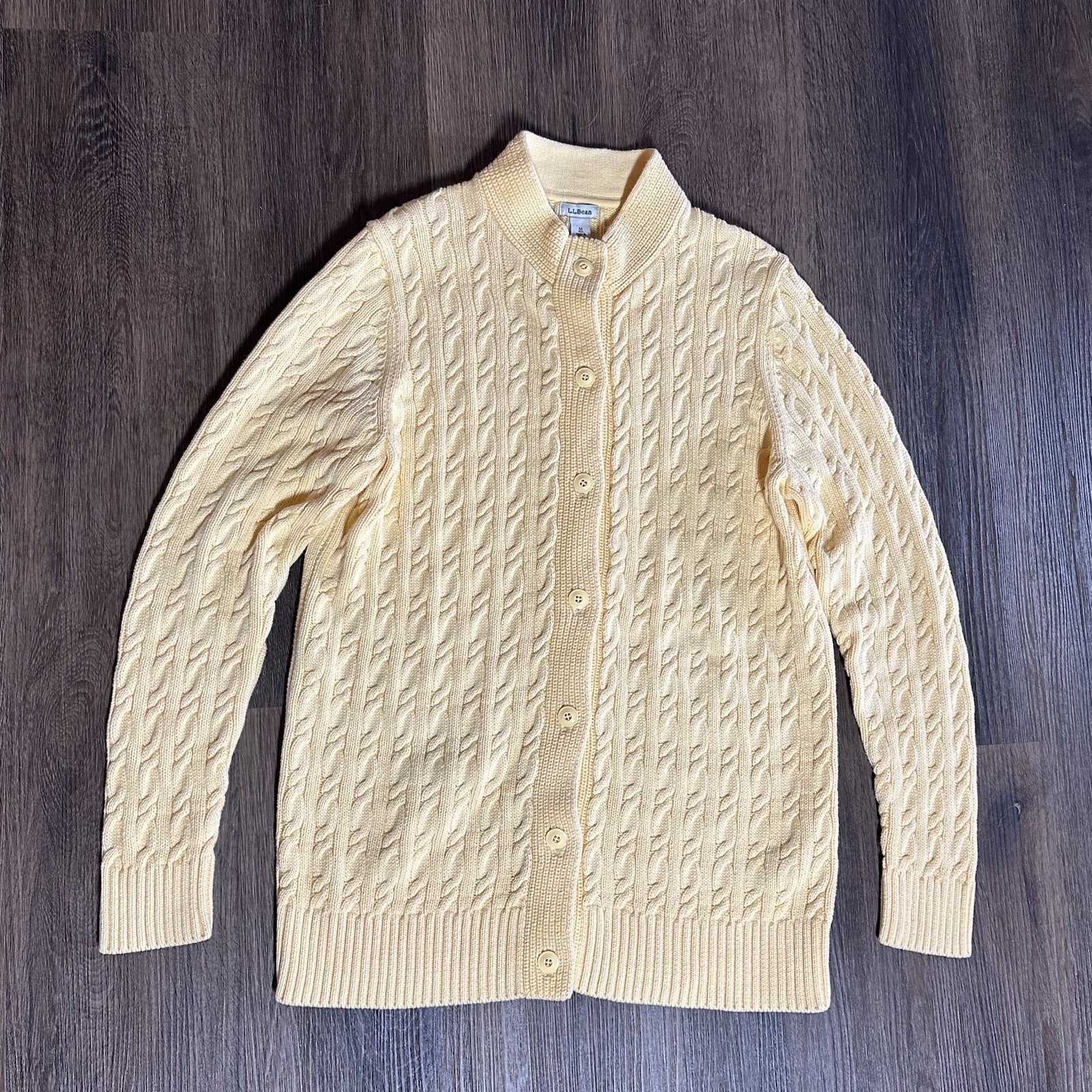 LL Bean Women's Cable Knit Cardigan Sweater 100% Cotton Full Button Front Butter Yellow