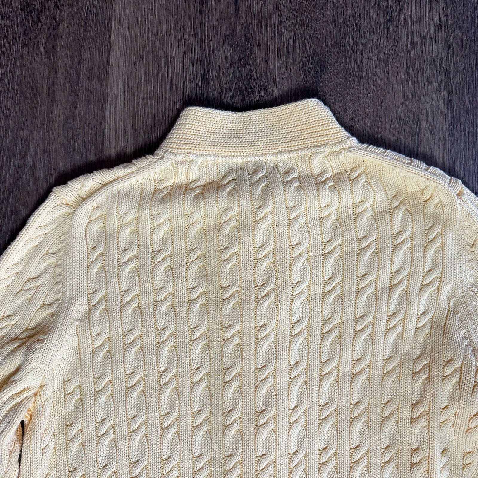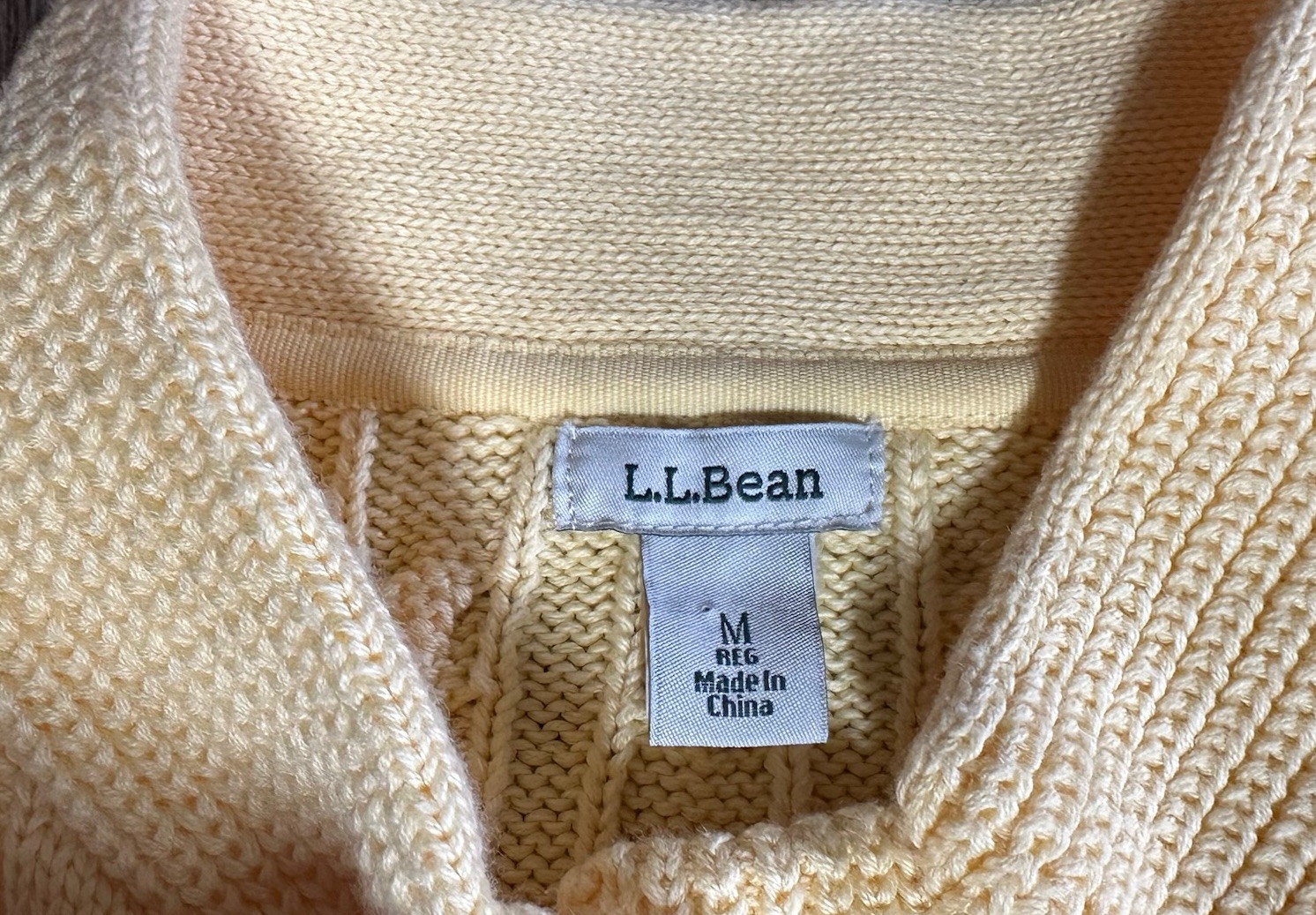 LL Bean Womens M Cable Knit Cardigan Sweater Cotton Button Front Butter Yellow