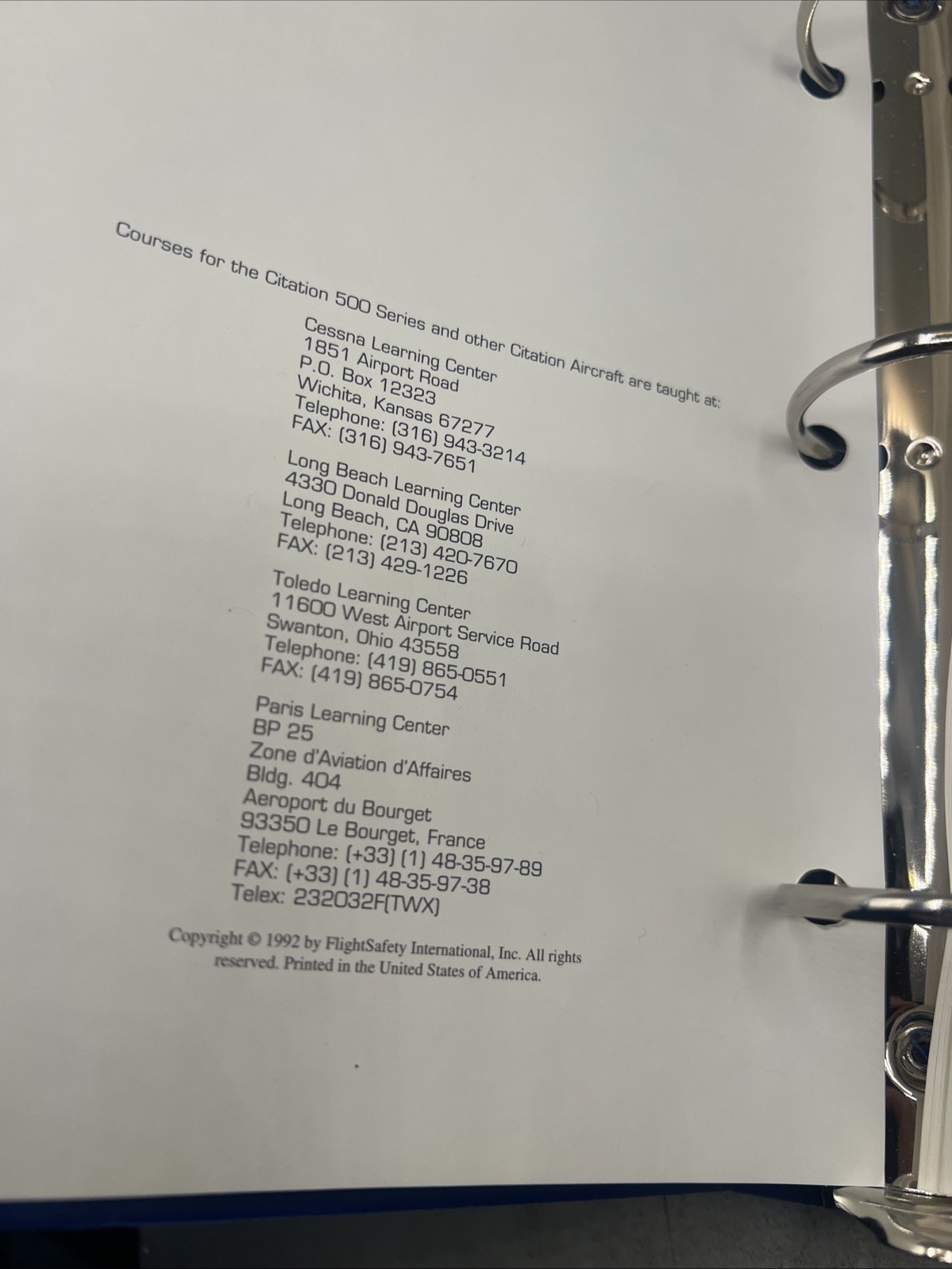 Flight Safety International Citation 500 Series Recurrent Training Manual Cessn