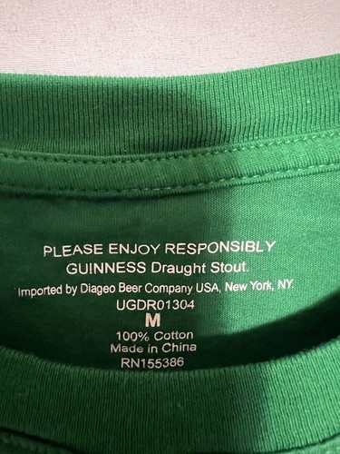 This green Guinness T-Shirt is a perfect addition to any wardrobe. With a St James Gate Dublin, Ireland design, this shirt is a great way to show off your love for the iconic Irish beer. Made for men in size medium, this shirt is perfect for any occasion. The shirt is pre-owned but in excellent condition and ready to wear. Its comfortable fit and classic design make it a great choice for any casual outing. Add it to your collection today!