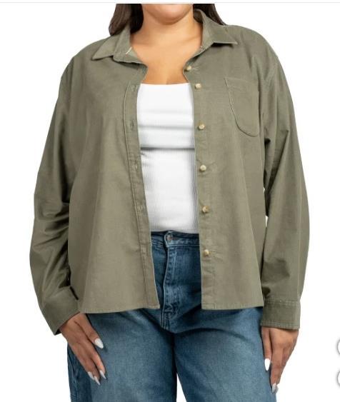 Jachs Womens Shirt Green Girlfriend Button-Up Long Sleeves Stretch Comfortable