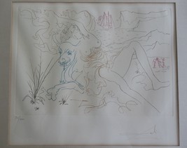 The art is a limited edition etching titled "Europa and the Bull" by Salvador Dali, created in 1972. This hand-signed and numbered print features a Surrealist and Contemporary Art style, depicting a landscape orientation on medium-sized paper. The framed artwork measures 23 inches in length and 21 inches in height, making it a unique and collectible piece for art enthusiasts. A great and authentic Dali. I will pack, ship and insure this great Dali at my expense. Thank you!