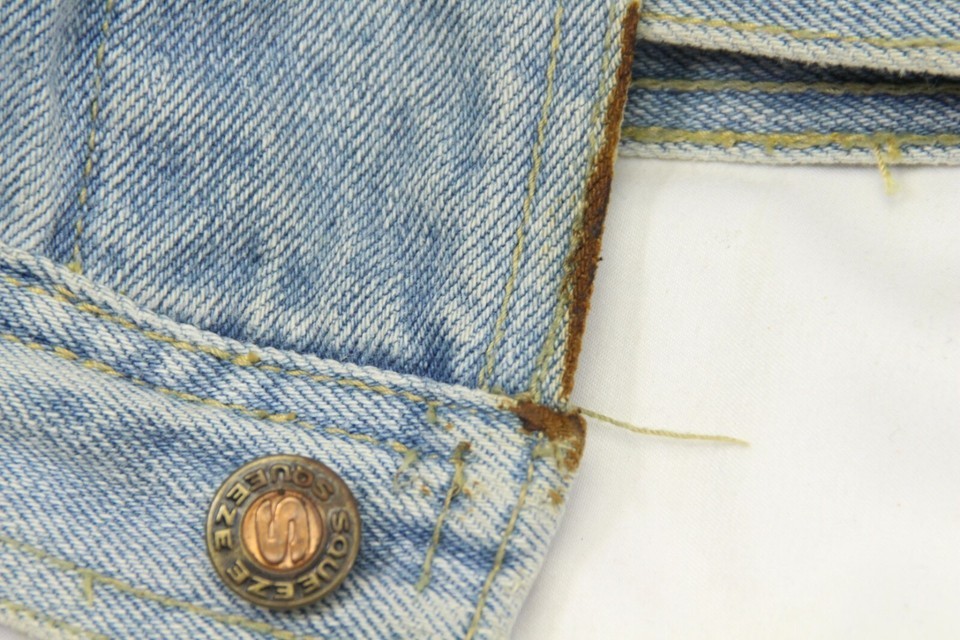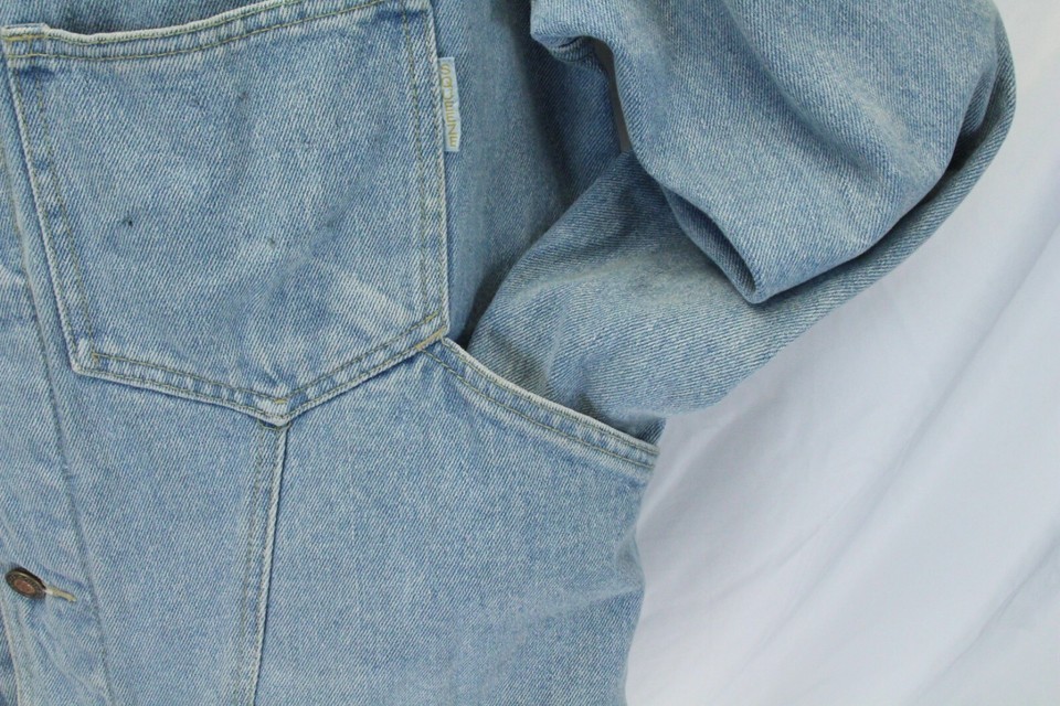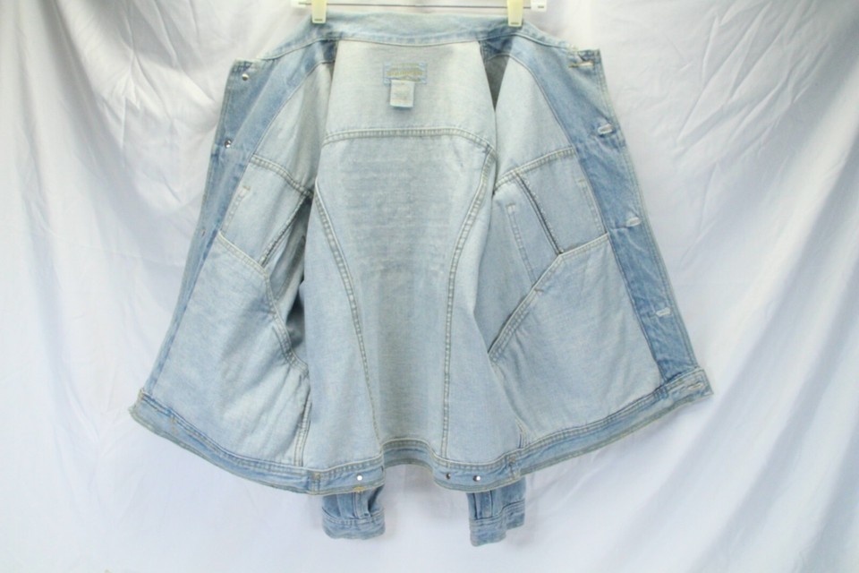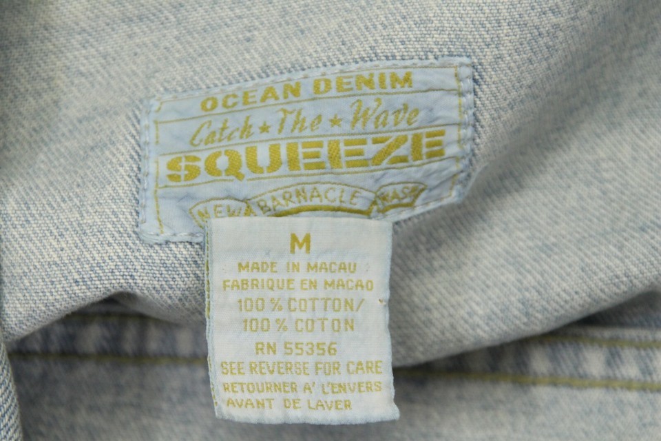 Denim Trucker Jacket USA Flag Patch Women Size M Ocean Denim Squeeze Politics