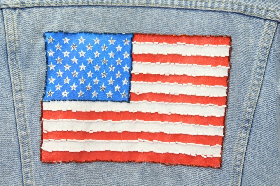 Denim Trucker Jacket USA Flag Patch Women and 10 similar items