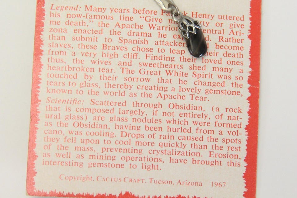 Apache Trail Stone Tie Bar Clip Cactus Craft Jewelry Tucson Az 1967 Obsidian