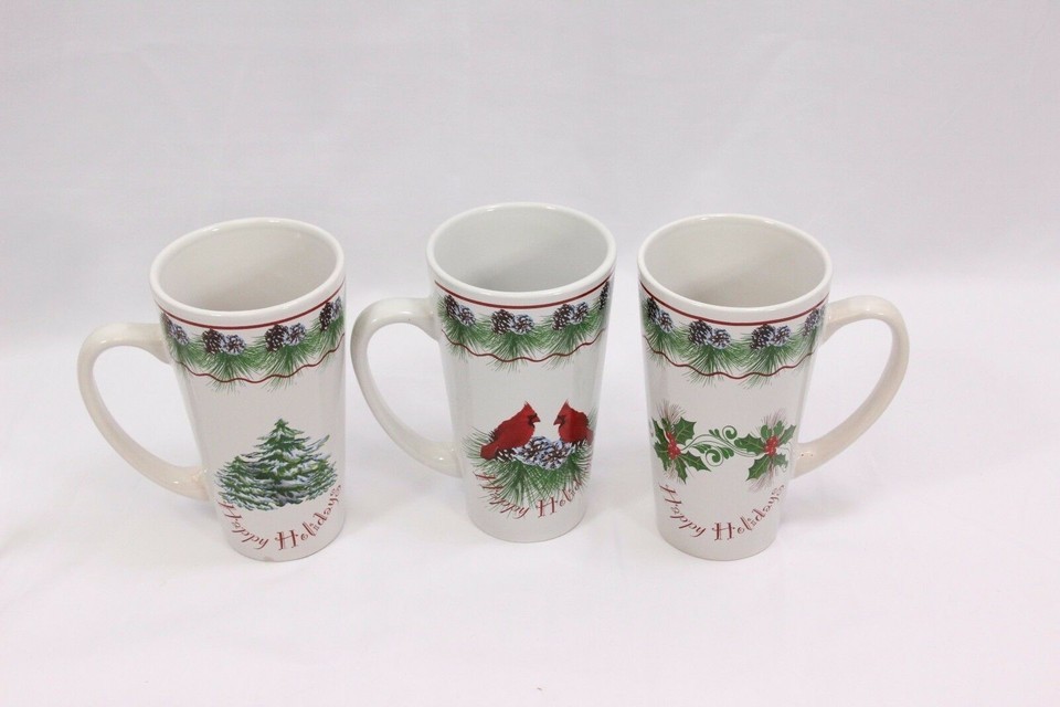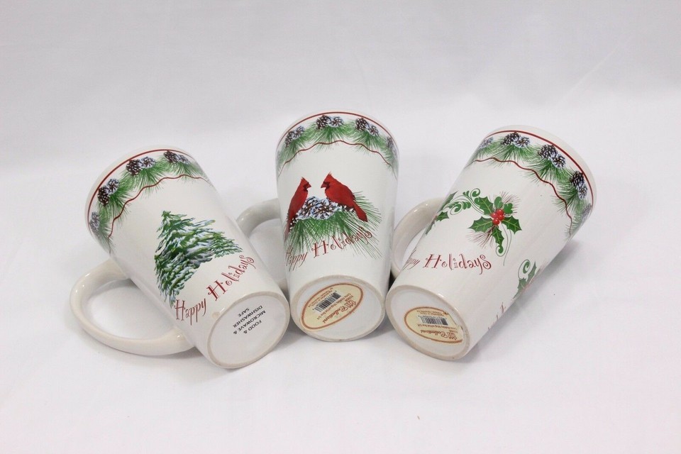 Tii Ceramic Christmas Latte Tall Mugs 6" Set of 3 Xmas