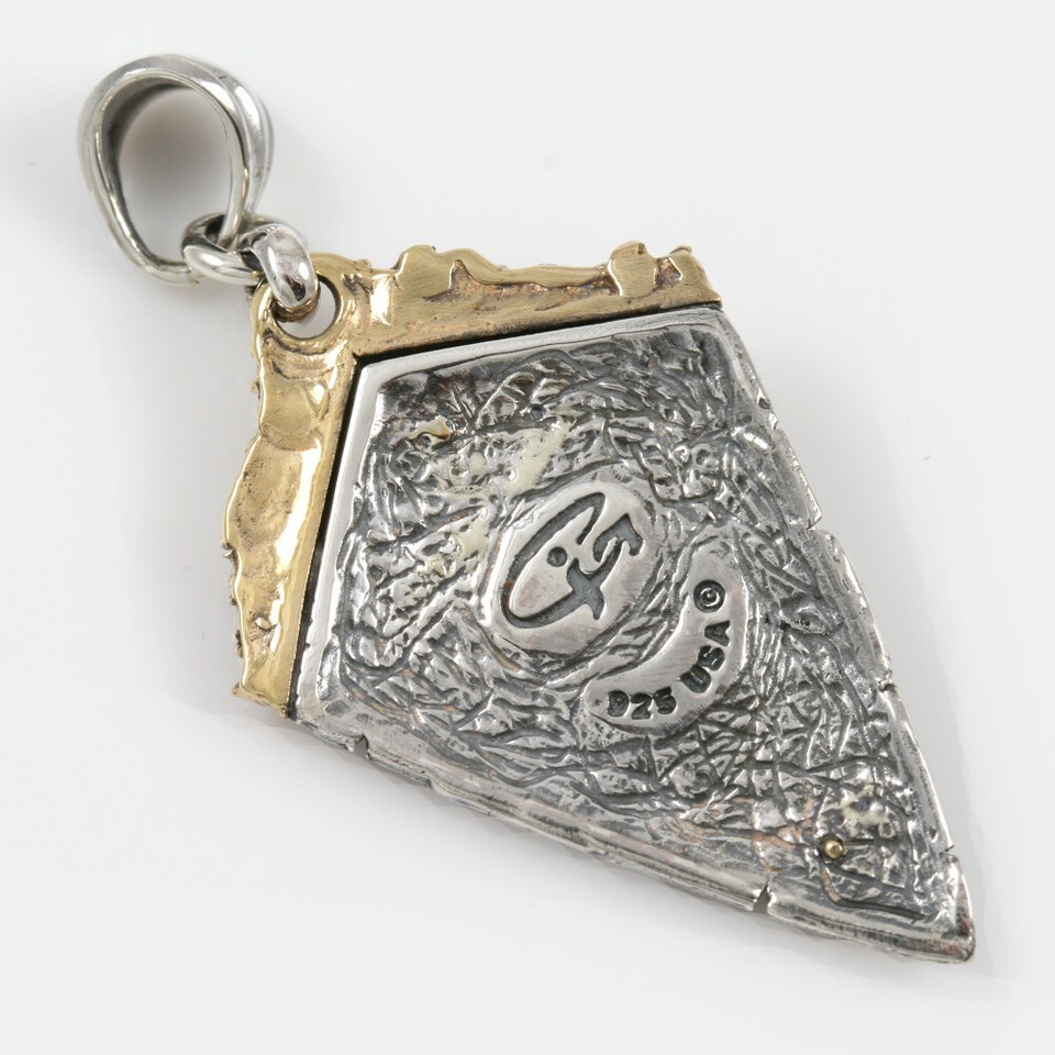 Atlantis Charm Sterling Silver Pendant w/Red Garnet & Golden Fish Greek Pattern