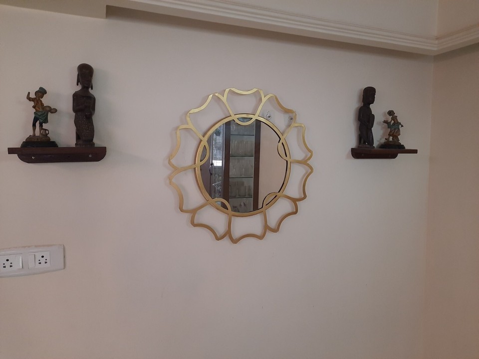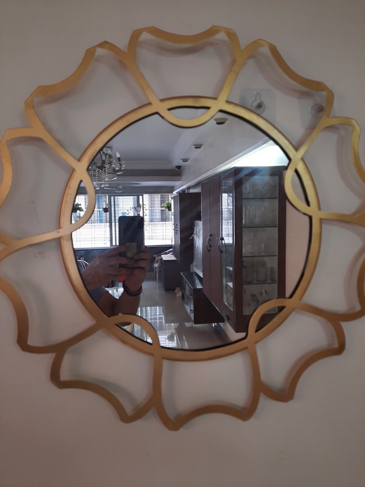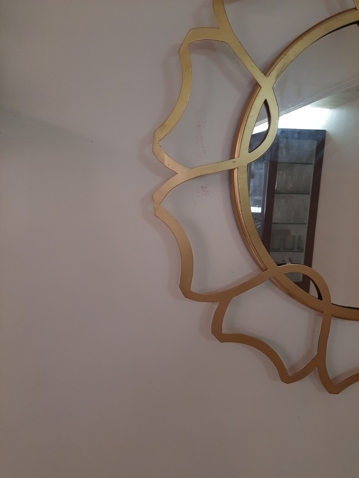 Metal Dorado Pankhu Vintage Grande Mano Redondo Pared Arte Espejo Salon Diseño
