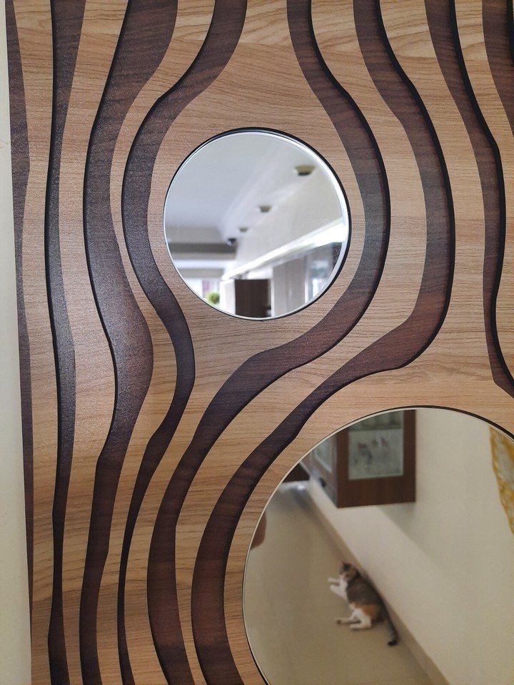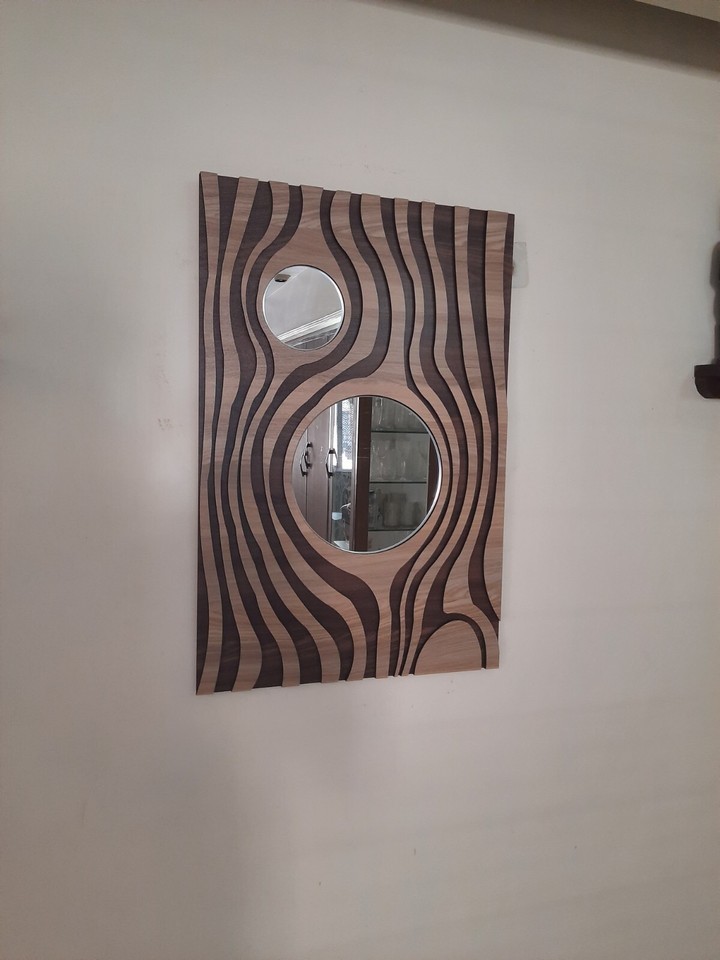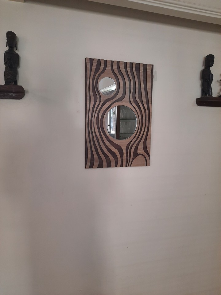 Progettazione di madre e figlia. Legno a doppio strato marrone e beige con 2 specchi, uno piccolo e uno grande, il diametro di quello grande e di 8 pollici e quello piccolo di 4 pollici. Lascia che questo design renda la tua casa più "tu", dal tradizionale al contemporaneo fino all'arredamento da parete totalmente inaspettato al prezzo più ragionevole. Amici e vicini invidieranno sempre la tua scelta di arredamento. Due strati di legno da 3 mm incollati insieme con gli specchi in mezzo, un design molto moderno e contemporaneo che e anche molto robusto e resistente. Ha 2 ganci metallici sul retro per appenderlo. La dimensione e di 16 pollici di lunghezza e 24 pollici di altezza Dispone di 2 ganci sul retro per appenderlo, imballato con la massima cura. Consegna promessa entro 8 giorni in q