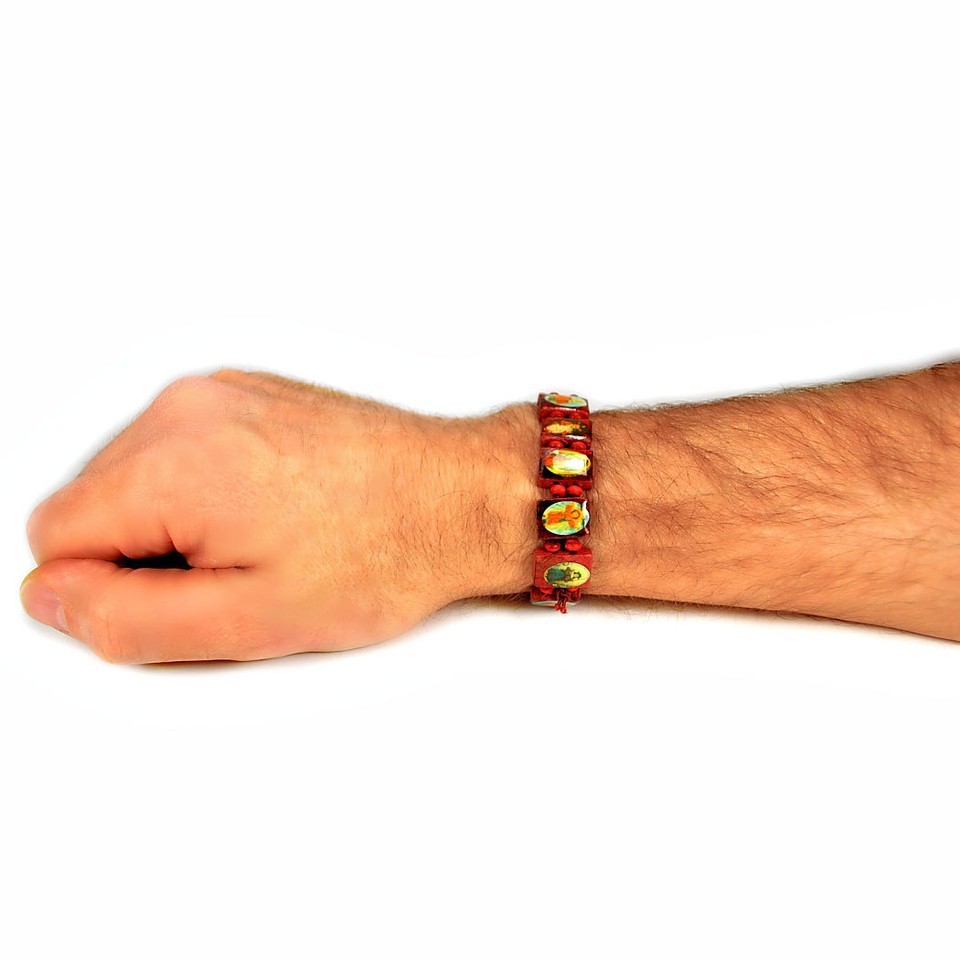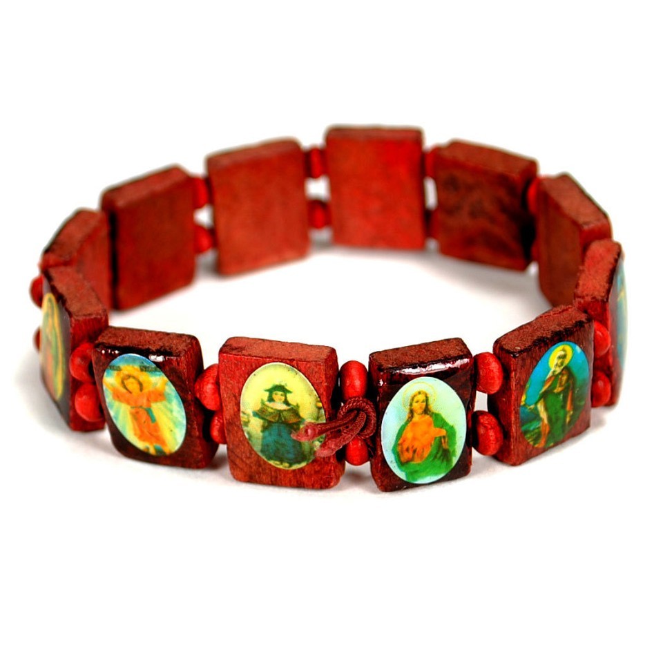 SAINT BEAD BRACELET Red Wood Stretch Elasitc Religious Icon Jesus Angel Catholic