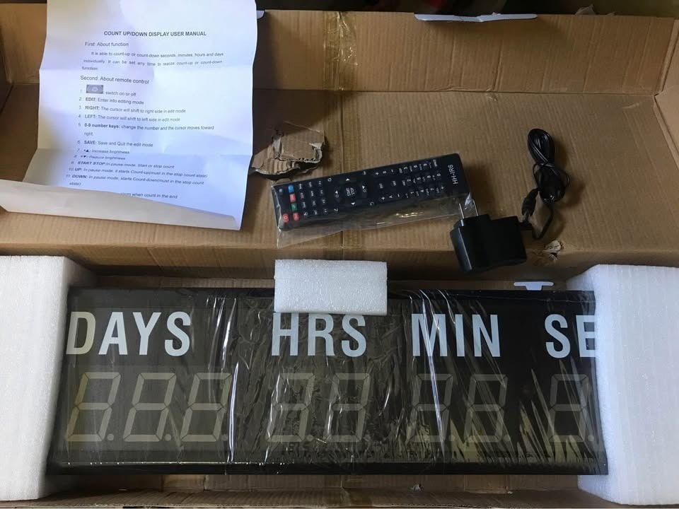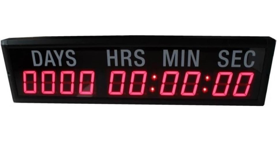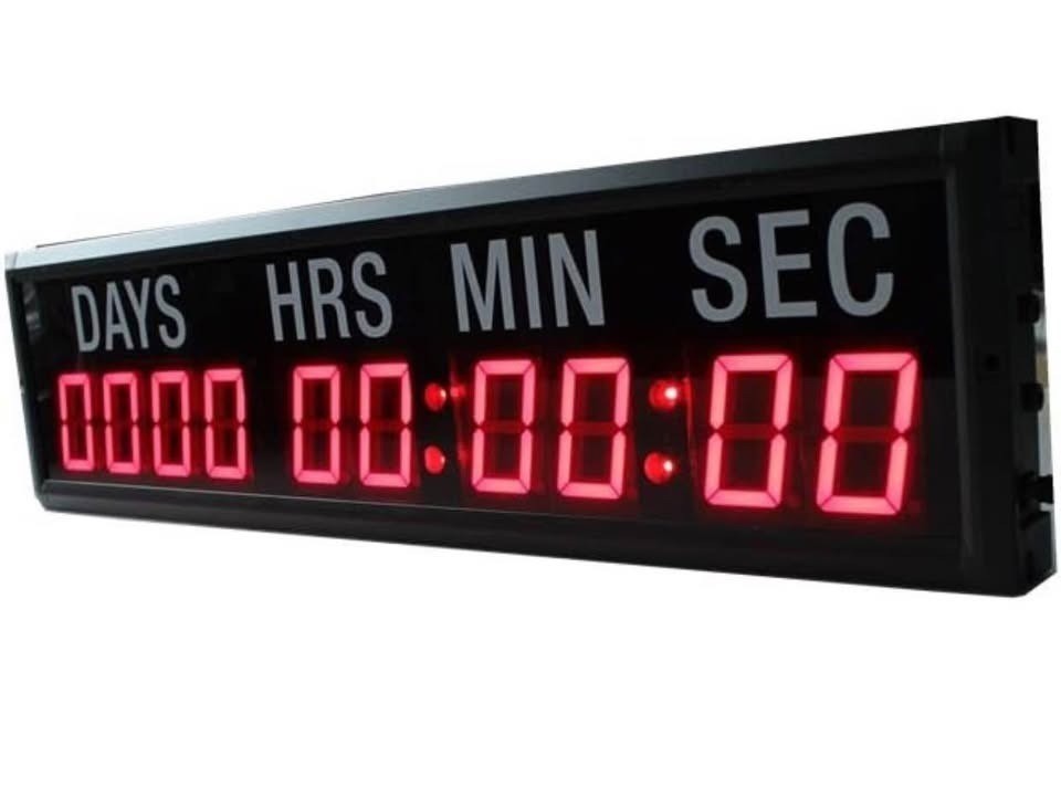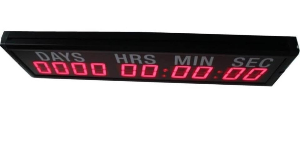 LED Timer Countdown/up Wall Mounted CLOCK with Days Hrs Min Secs -10 Digits- RED