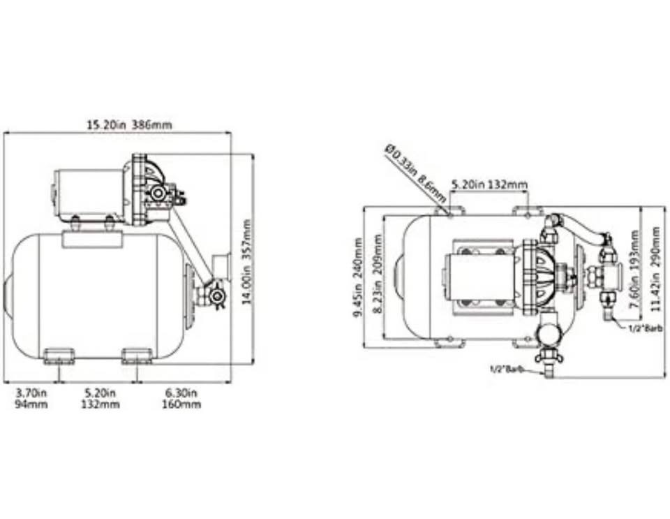 SeaFlo Marine Water Pump 12 V DC 60 PSI 5.5 GPM 2 Gallon Accumulator Tank System