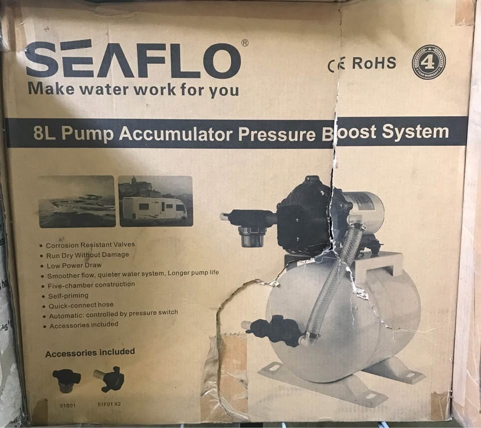 SeaFlo Marine Water Pump 12 V DC 60 PSI 5.5 GPM 2 Gallon Accumulator Tank