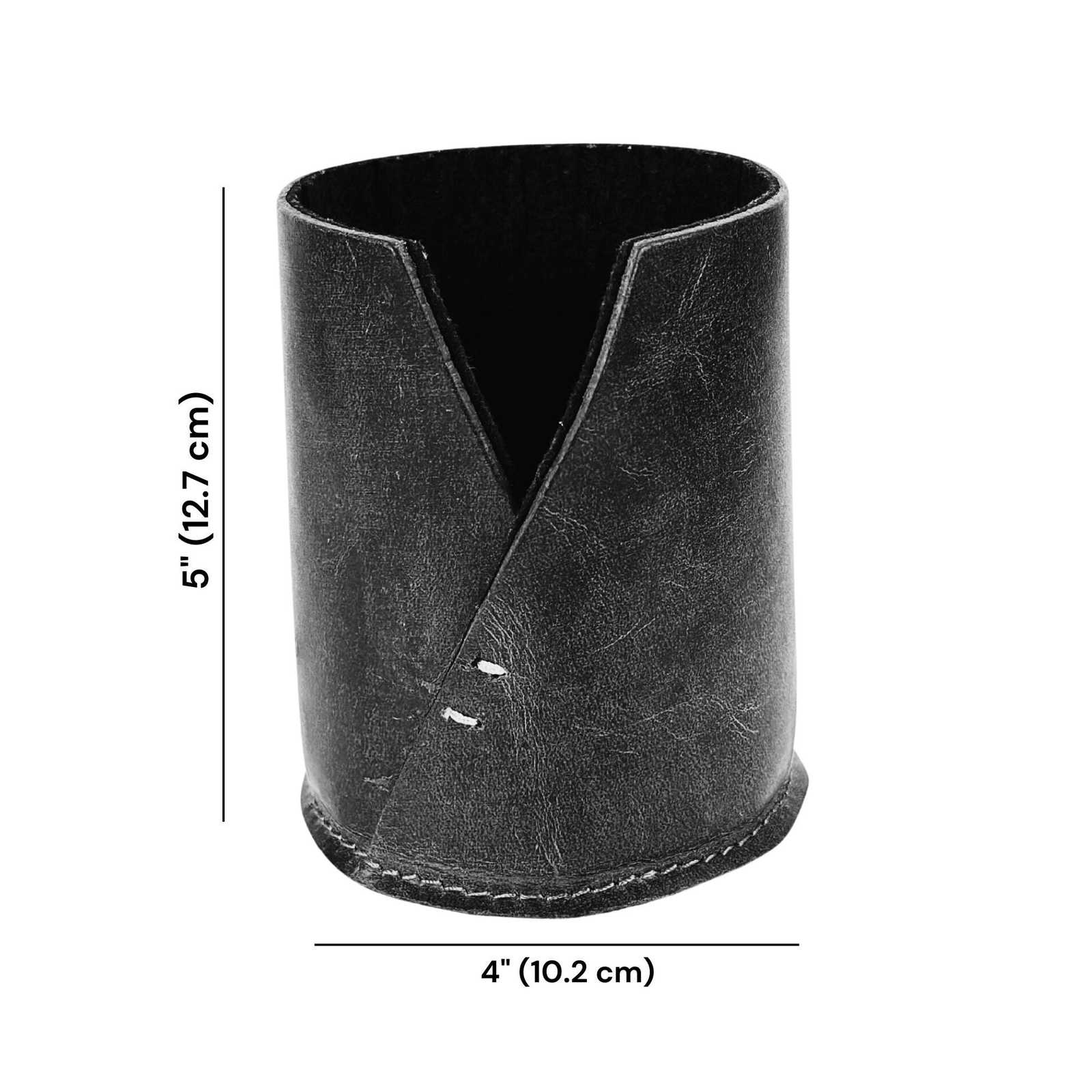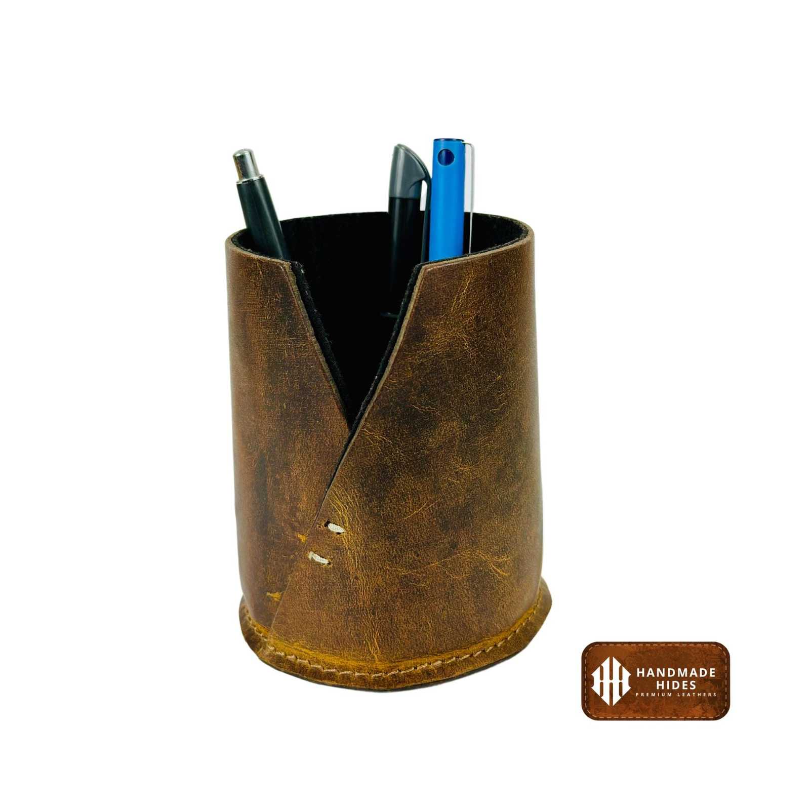 Organize your desk in rustic elegance with this handmade leather pen holder