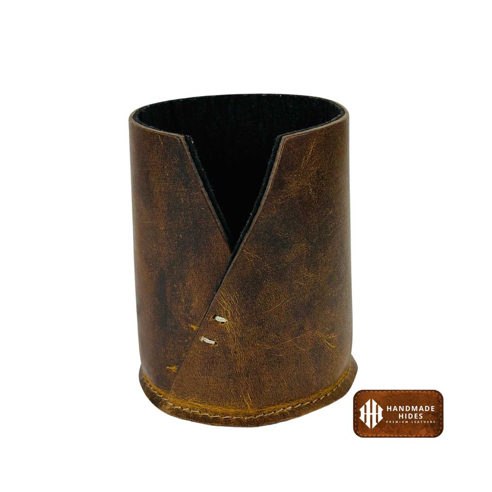 A perfect blend of warmth, functionality, and artisanal charm—crafted from genuine leather in a rich rustic brown with a natural worn finish, this pen holder makes workspace organization truly stylish.
