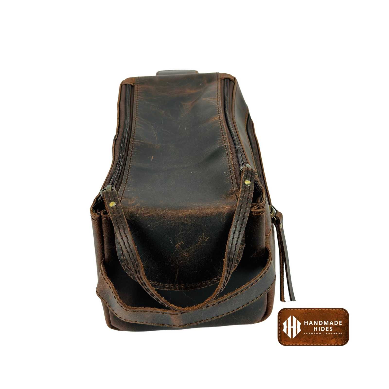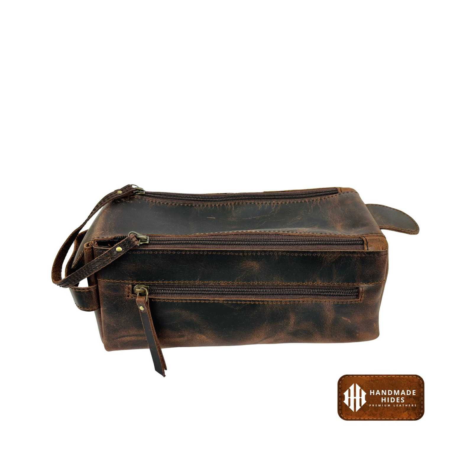 Each bag is meticulously handmade by skilled artisans, ensuring a timeless piece that develops a beautiful patina over time. With multiple compartments and thoughtful dimensions, it keeps all your grooming essentials neat, secure, and easily accessible.