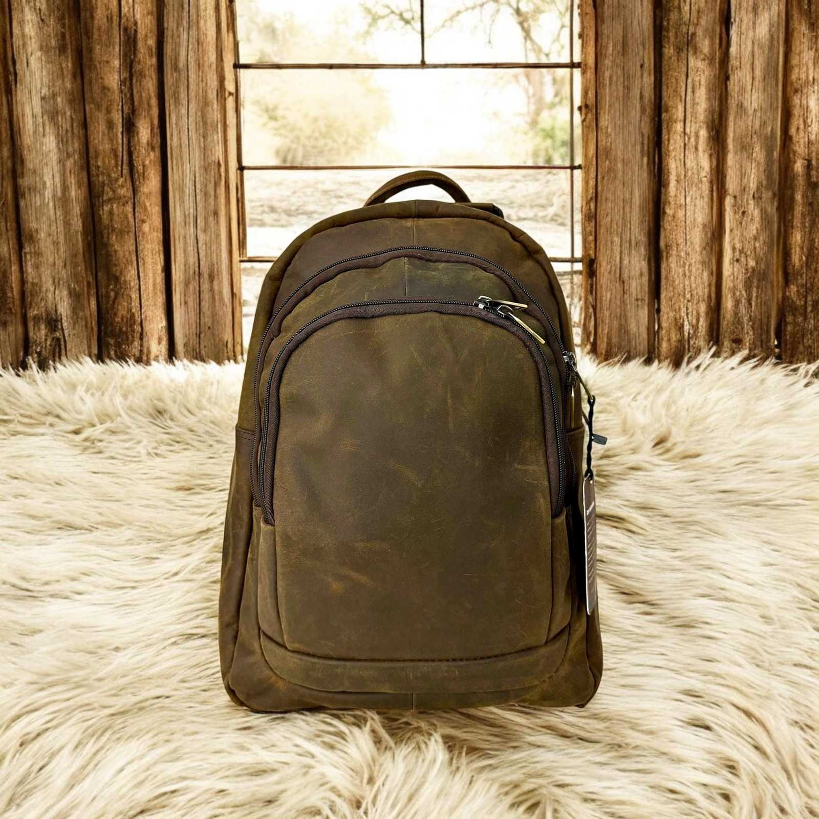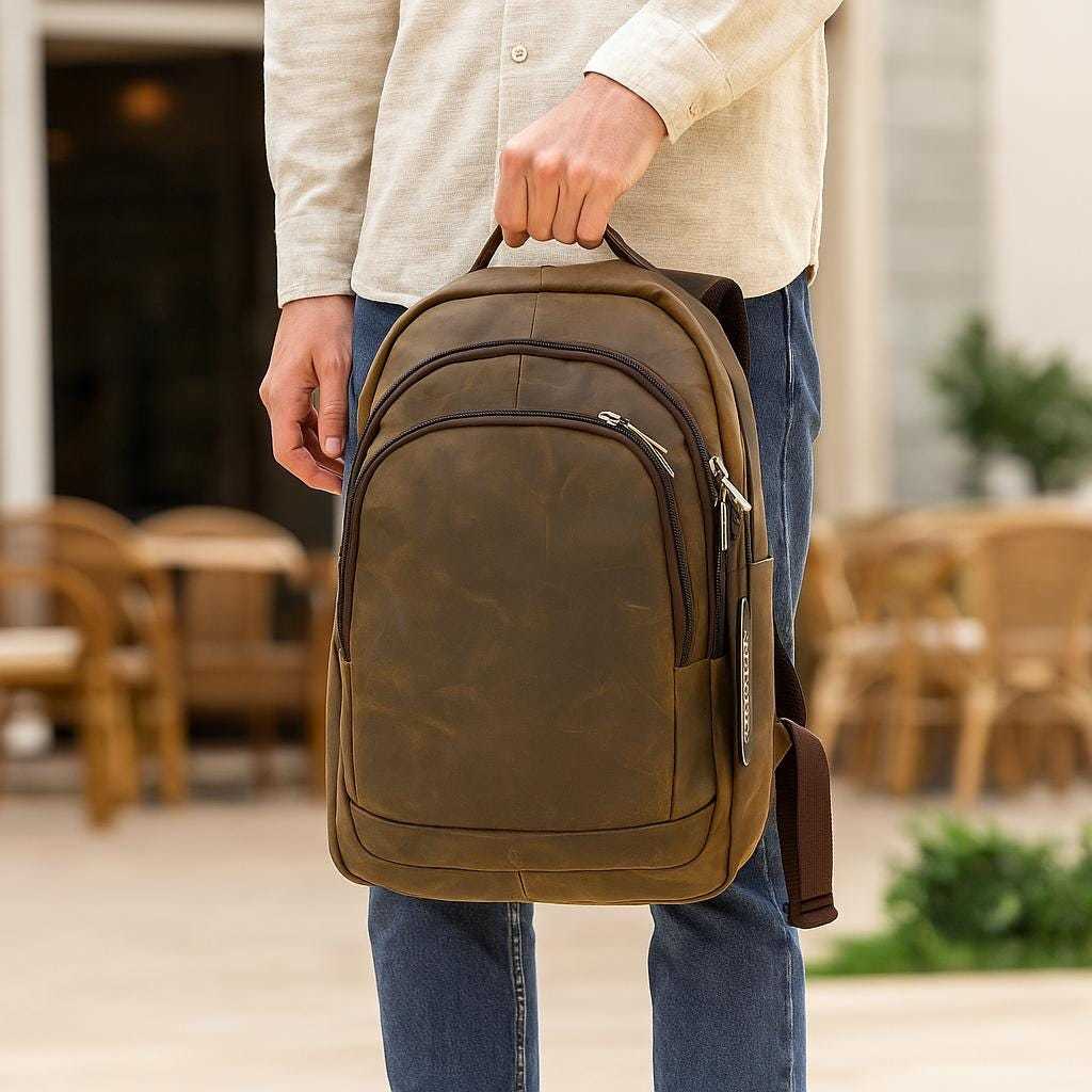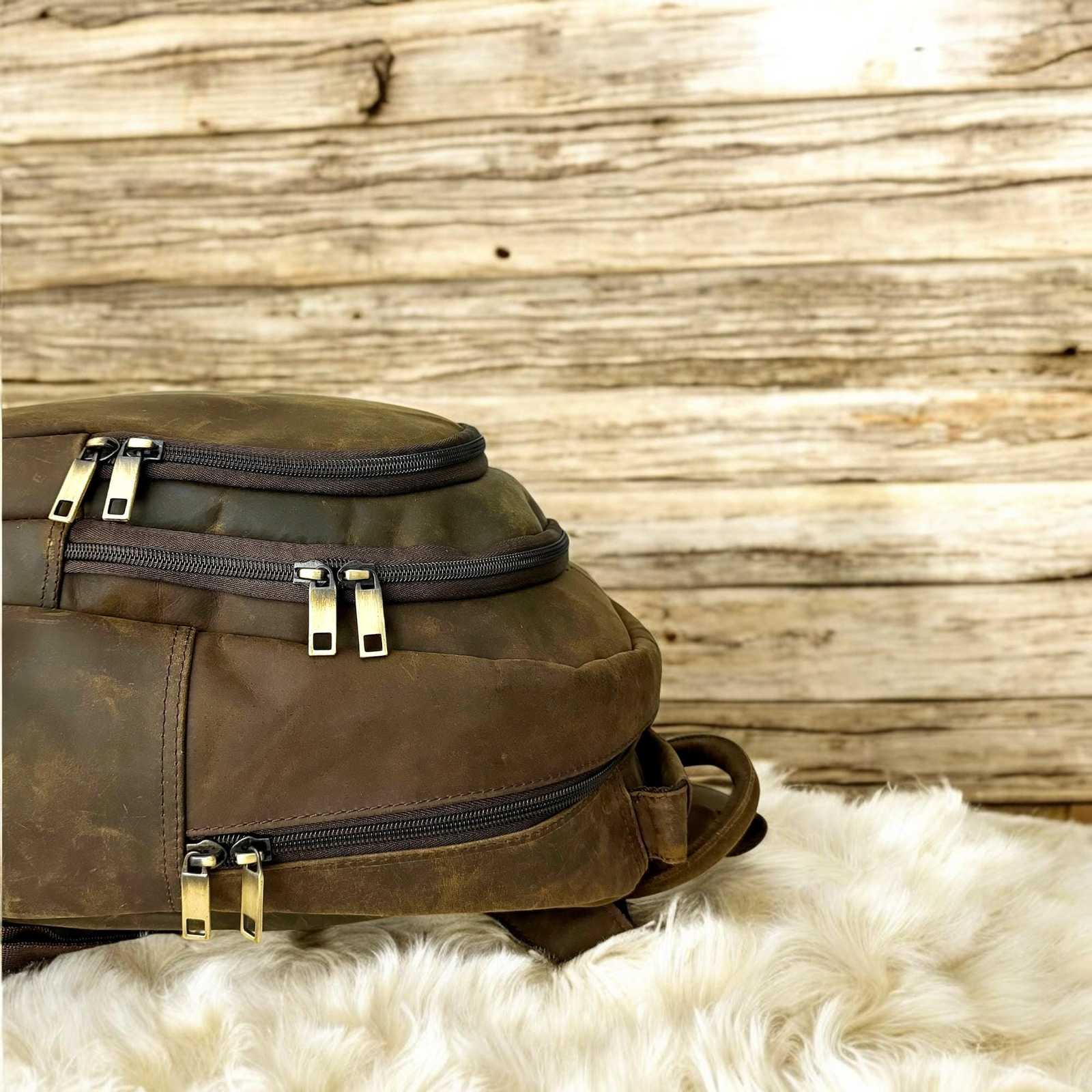 Handmade Brown Suede Leather Backpack: Unisex Laptop Rucksack