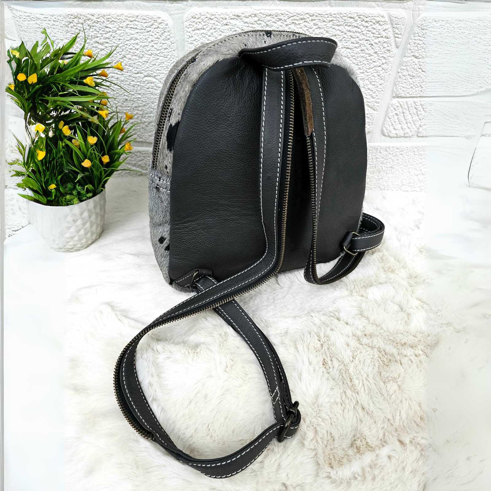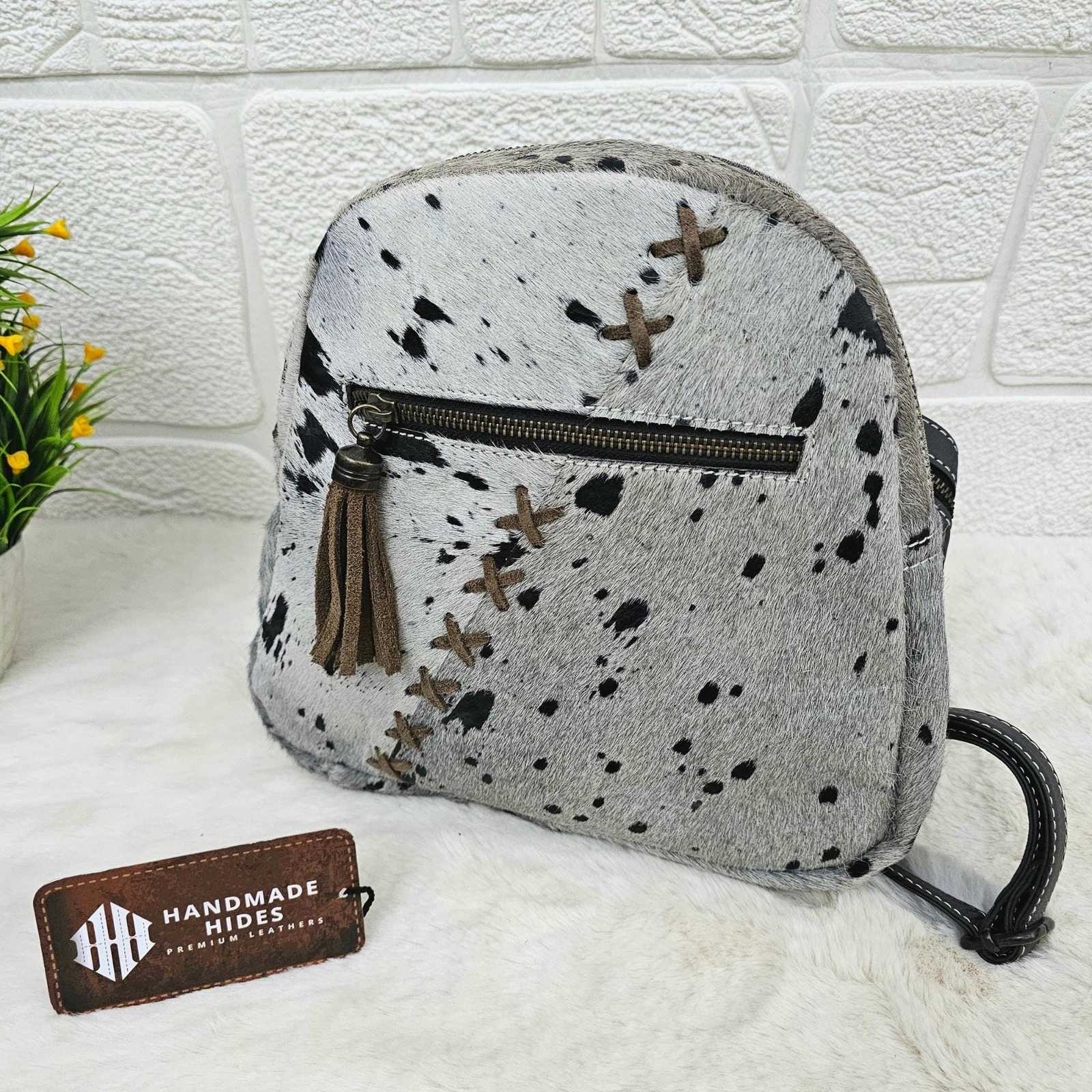 Handmade Gray Hair?On Leather Mini Backpack – Stylish, Compact Functional