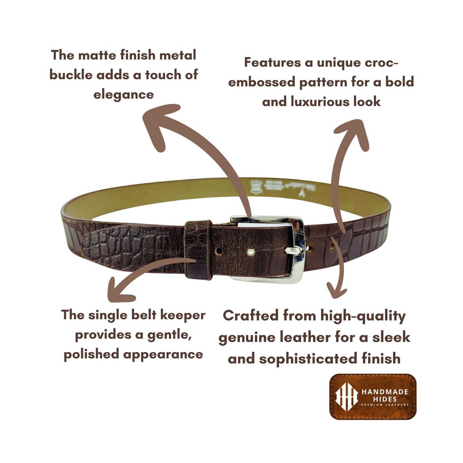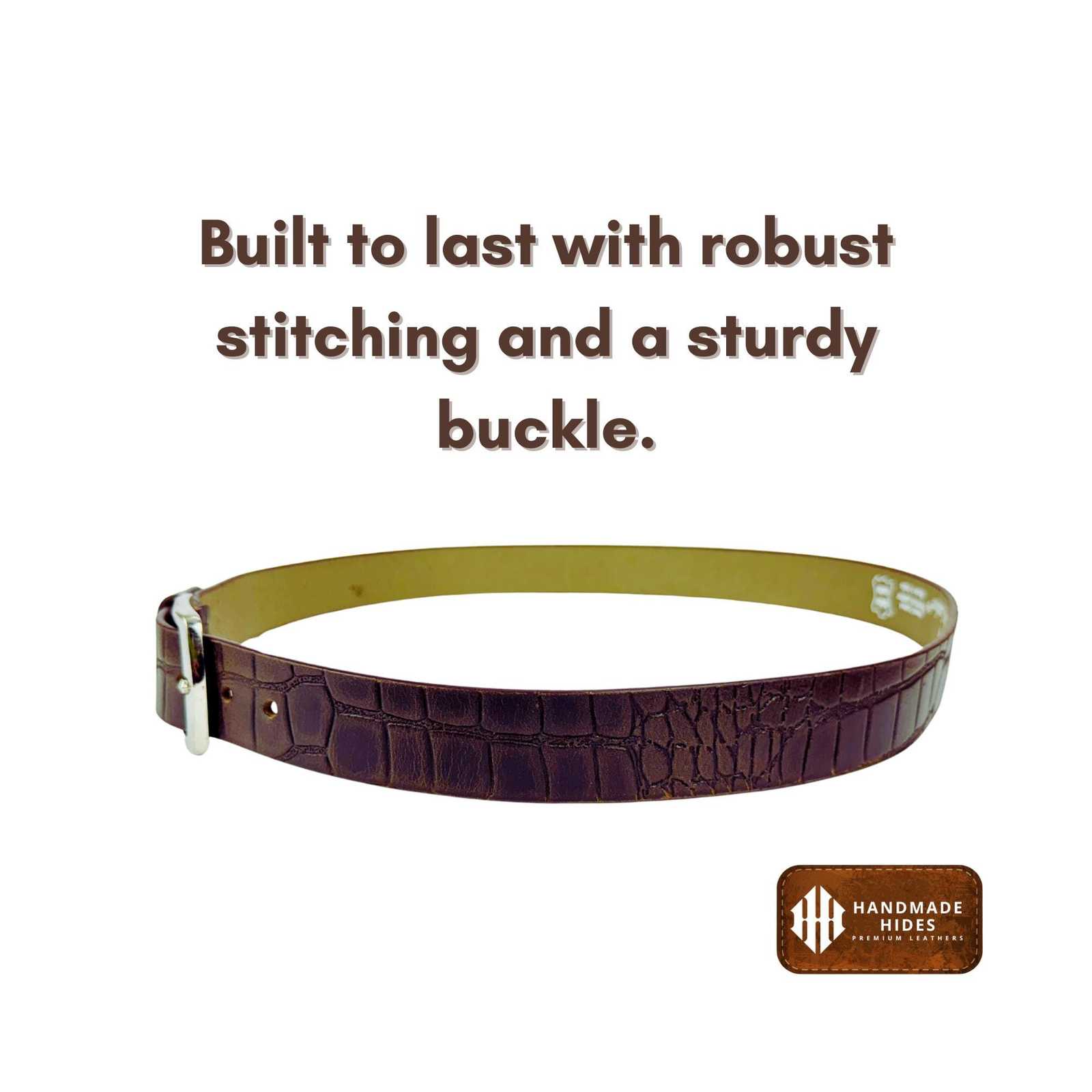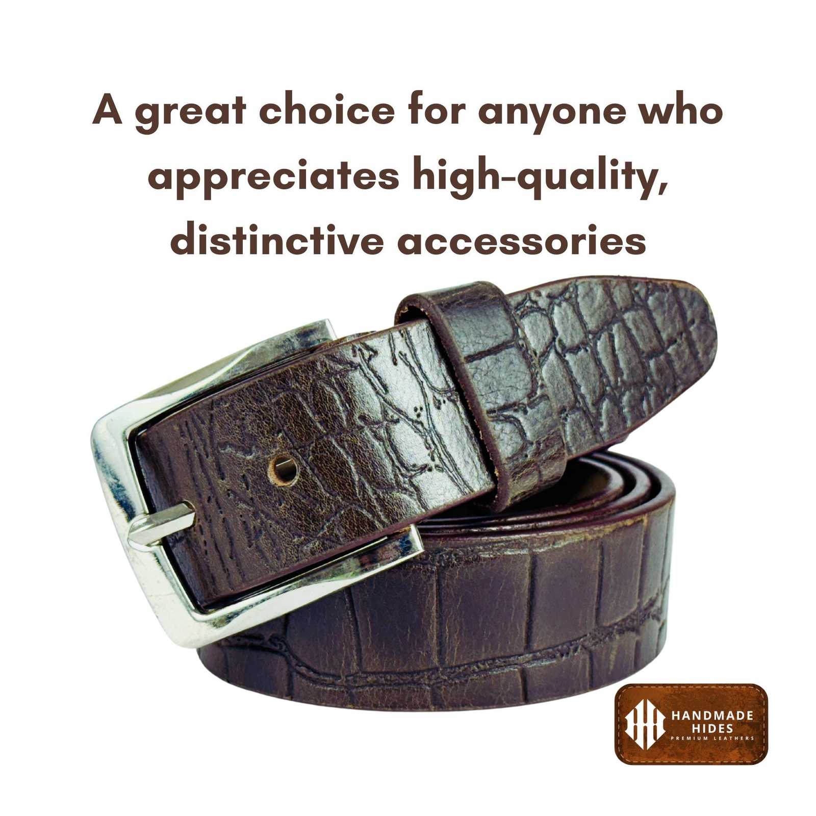 Elevate your style or surprise someone special with this Handmade Croc?Embossed Brown Leather Belt—a premium accessory blending timeless craftsmanship and rugged durability.