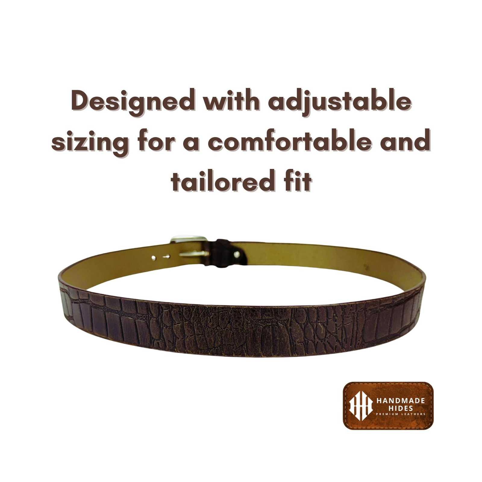 Handmade Croc-Embossed Brown Leather Belt: Full-Grain Men's Belt