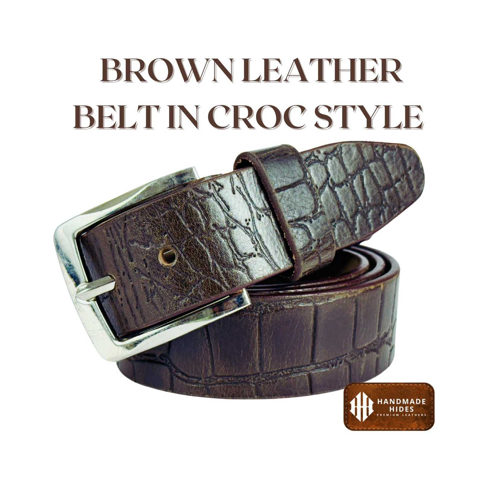 Handmade Croc-Embossed Brown Leather Belt: and similar items