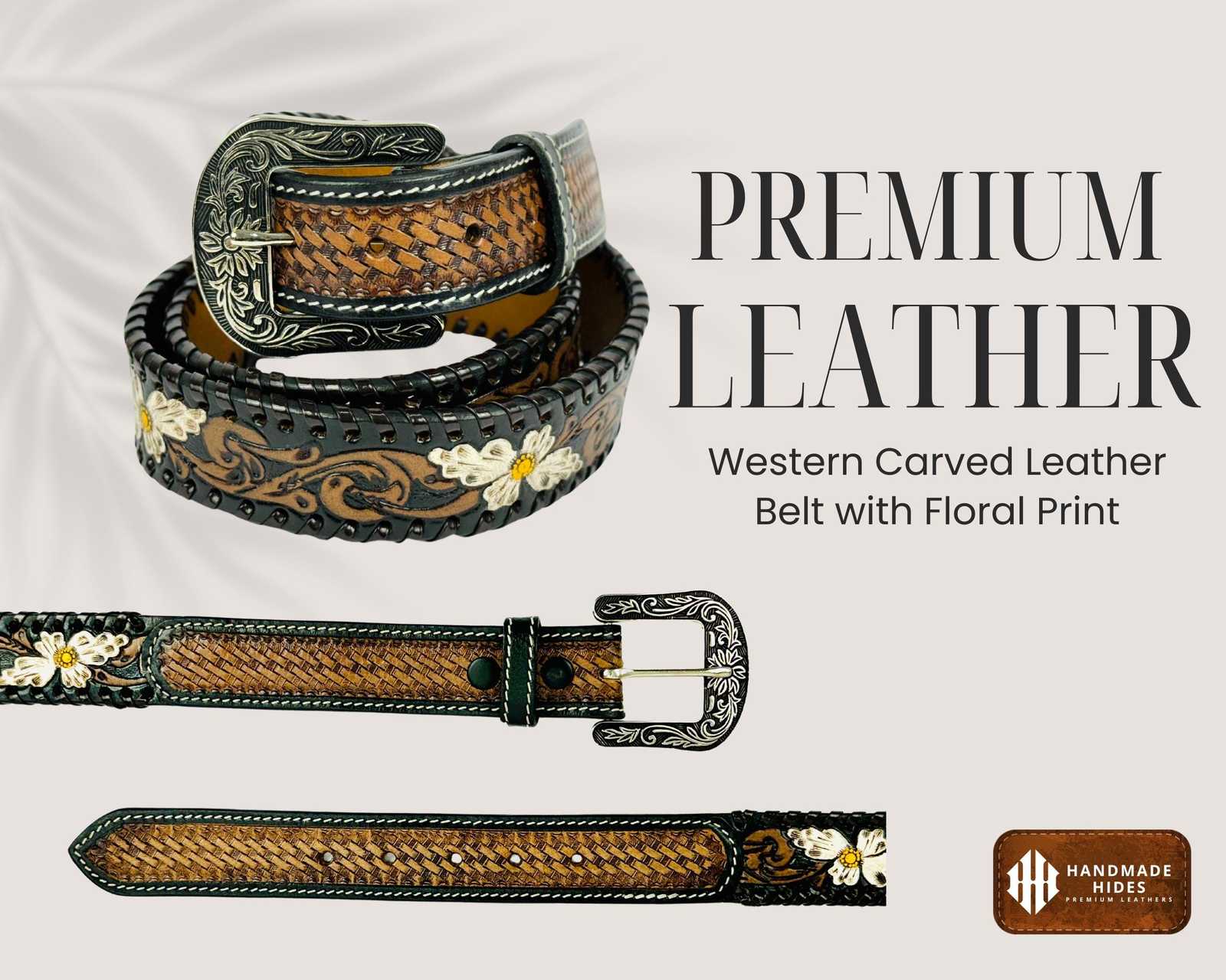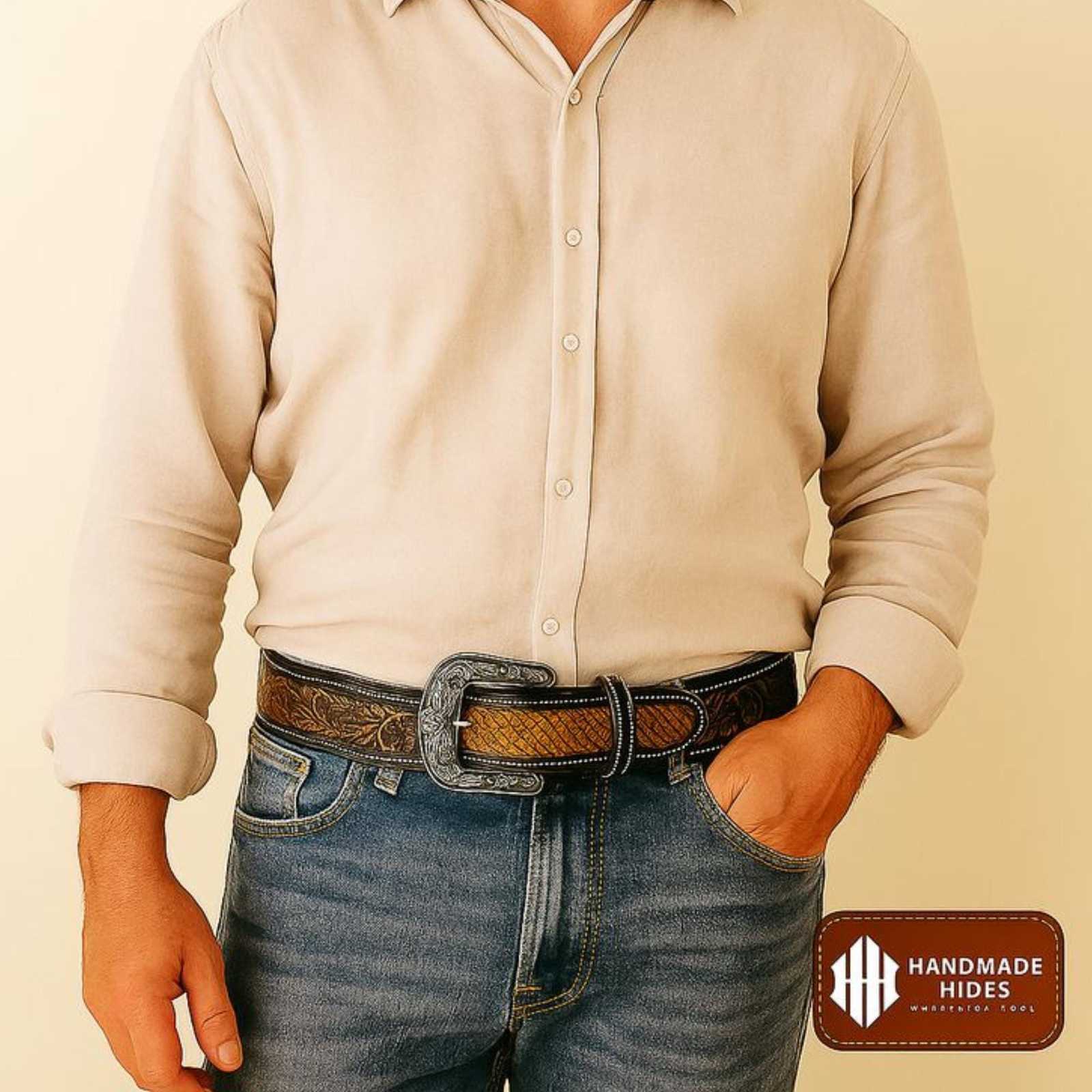 ?? Floral Carved Design – Hand?tooled floral patterns give the belt unique Western character and artisanal appeal.