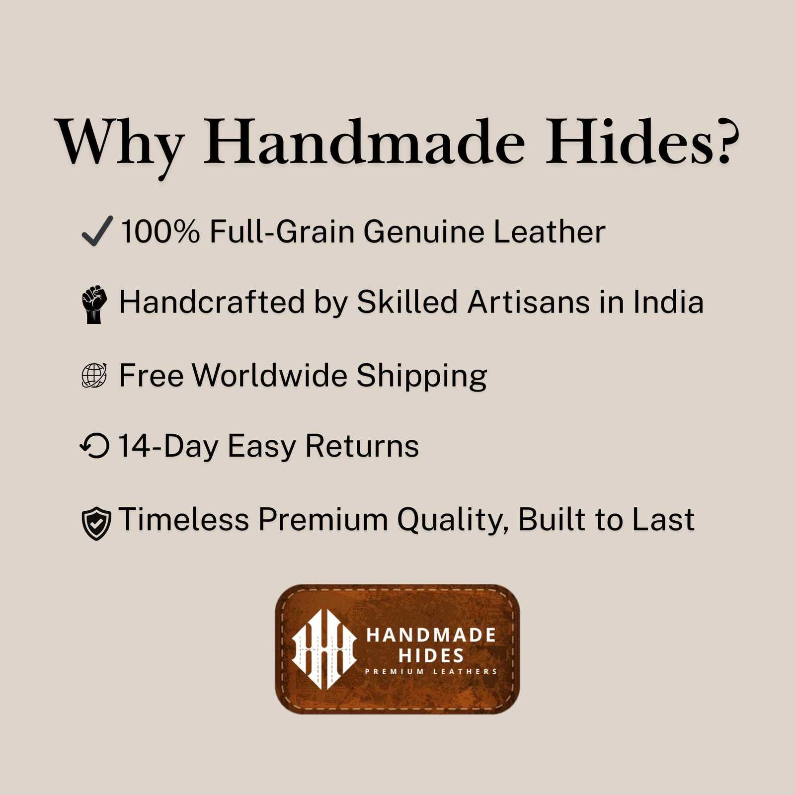 ? Premium Full?Grain Leather: Smooth black finish that develops character over time.