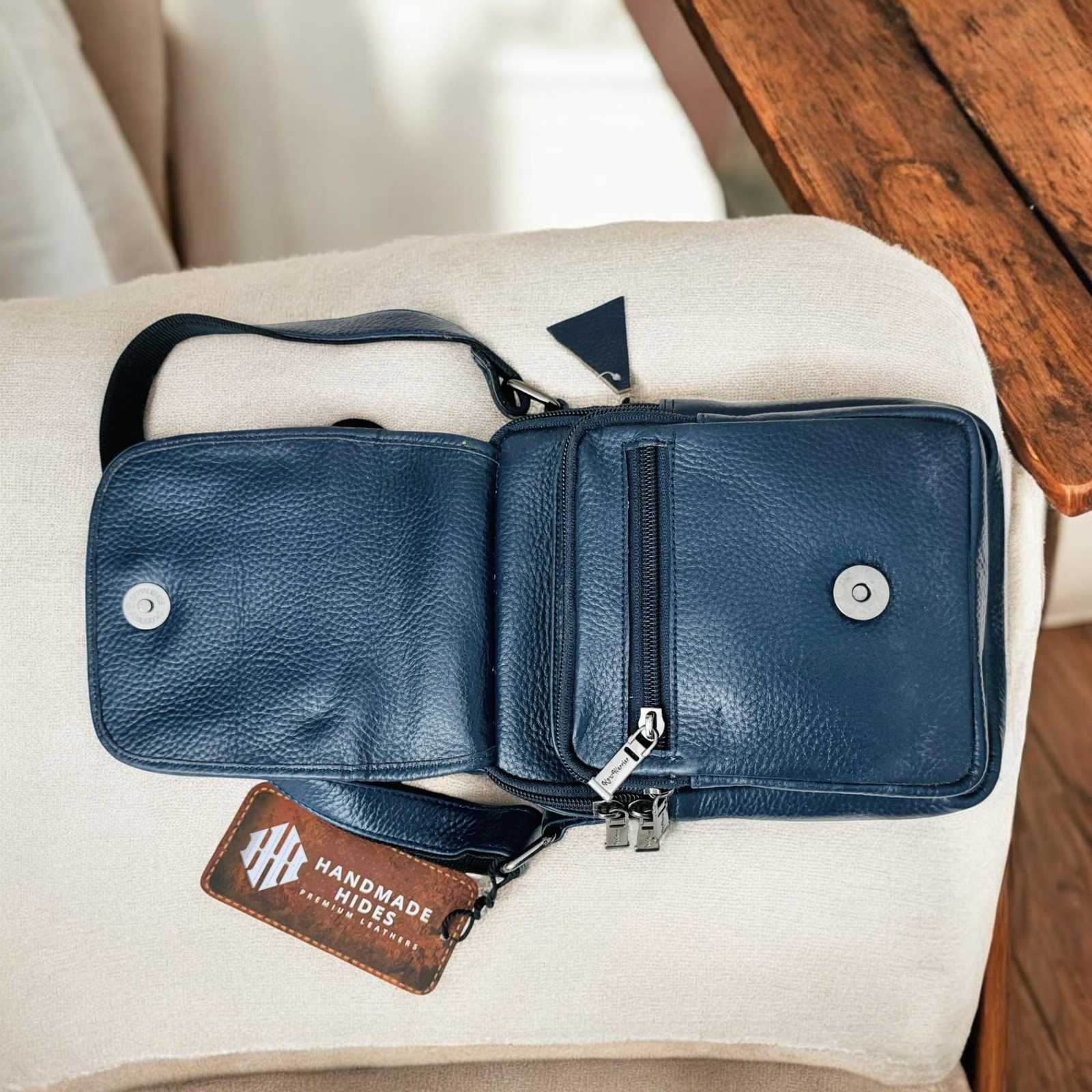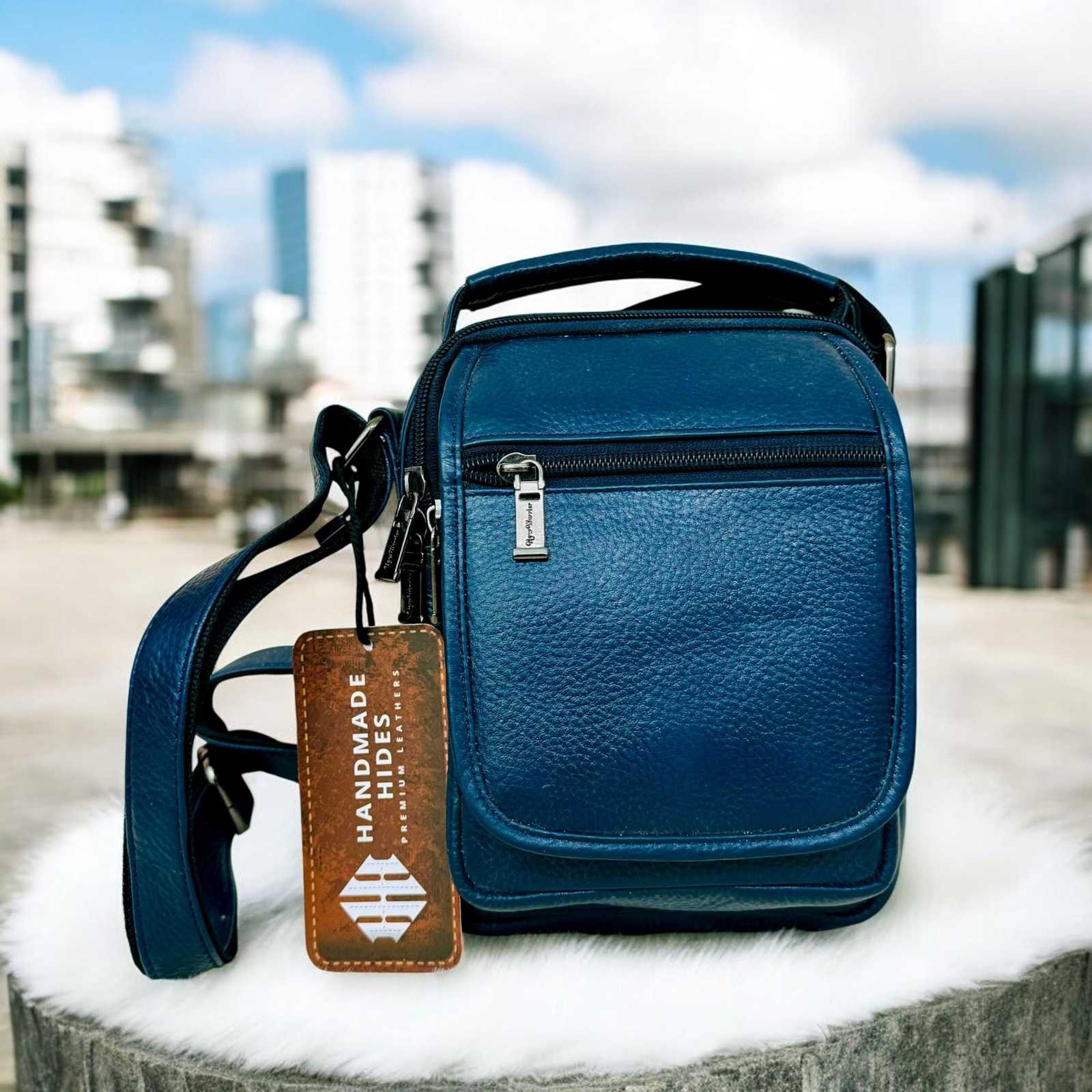 Travel light and look effortlessly chic with this handmade leather bag in a stunning blue crocodile?embossed finish. Compact yet thoughtfully designed with eight pockets, this crossbody bag is perfect for travel, errands, or daily use. It’s a timeless accessory that blends luxury, durability, and practical organization.