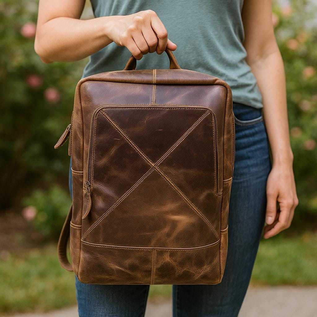 Elevate your daily carry with this handmade leather laptop bag—crafted from 100% full?grain marbled leather and designed for professionals and travelers. This leather laptop backpack blends timeless style with modern utility, making it a refined companion for work, meetings, school, and journeys.